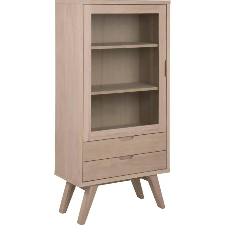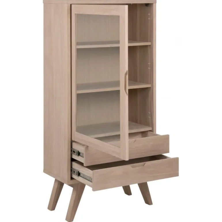 A-Line vitrine massiv/finer eg hvidpigmenteret olie 1 glaslåge, 2 skuffer, samlet L:72 B:36 H:145 cm