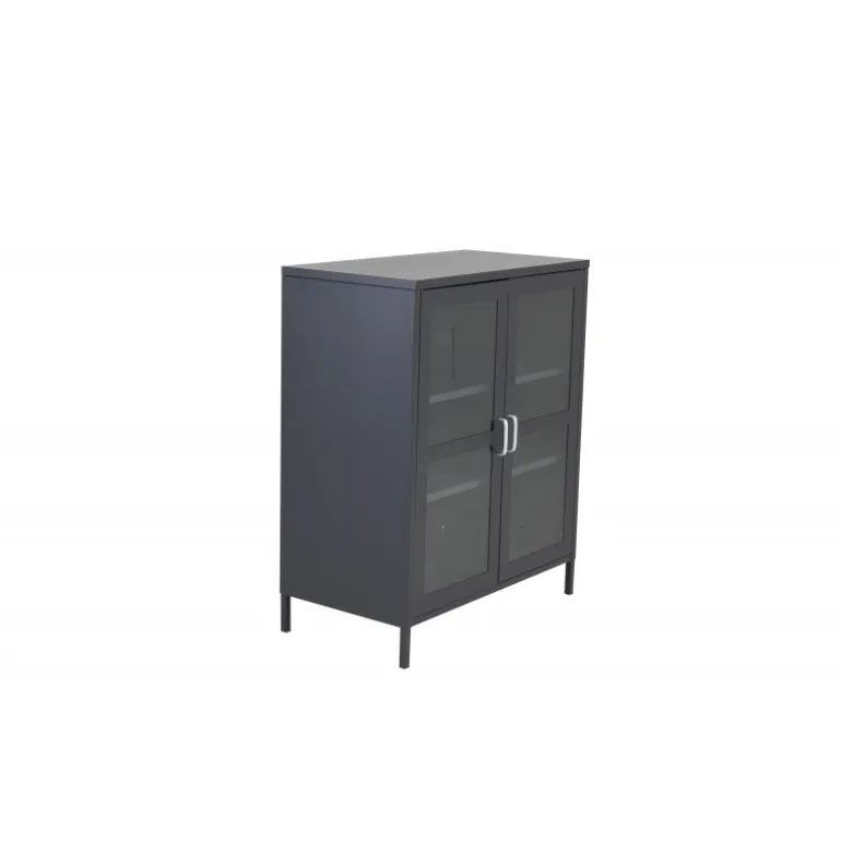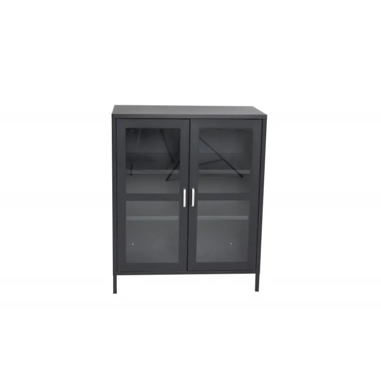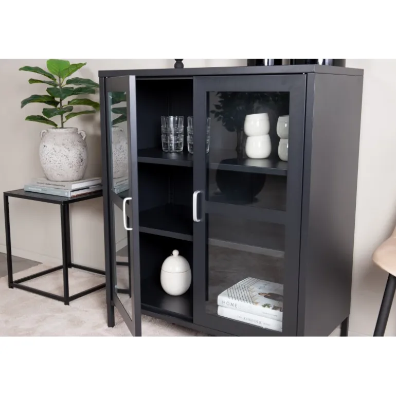 - Materialer af høj kvalitet: Sort pulverlakeret stål med glaslåger.