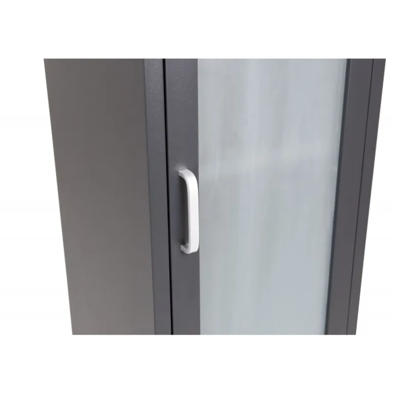 Acero, et praktisk udstillingsskab med smalt design og imponerende højde! Dette skab er en populær tilføjelse til interiøret med sine smarte og stilfulde opbevaringsmuligheder. I dette sorte skab i pulverlakeret stål finder du flere hylder og en dør med frostet finish, hvor du nemt kan opbevare alt fra fint porcelæn til bøger og smukke dekorationer – valget er dit! Se vores billeder for inspiration. Den smalle firkantede form på skabet gør det nemt at placere uden at optage for meget plads. Lettere samling kræves. Plejeråd: Aluminium og krom er materialer, der afviser snavs og væsker. Vær dog opmærksom på, at vand kan forårsage pletter og rust. Sørg derfor for at tørre overfladen af med en blød, fugtig klud og sæbevand. Hvis pletter eller rust er genstridige, anbefales en blød klud fugtet med ren alkohol.