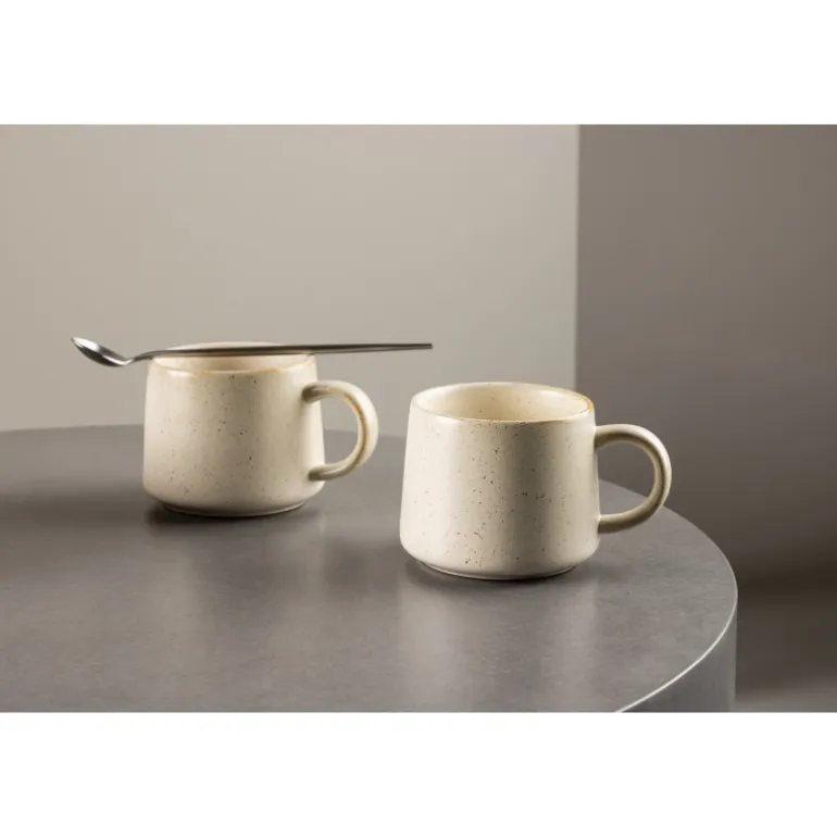 - Moderne design: Beige kop med små sorte prikker for et trendy look.