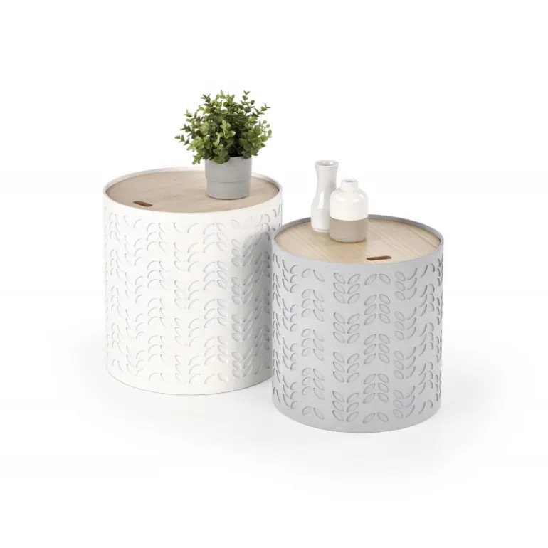Opdag elegance og funktionalitet med ALBA sæt af to sofaborde. Disse borde er perfekte til enhver stue, og med deres lakkeret MDF overflade i hvid mat og grå mat farver, tilføjer de et moderne touch til dit hjem. Med dimensioner på fi35/35 cm og fi39/40 cm passer de perfekt ved siden af din sofa eller som ekstra opbevaringsplads. Disse borde kommer i et sæt af to og er nemme at samle.
