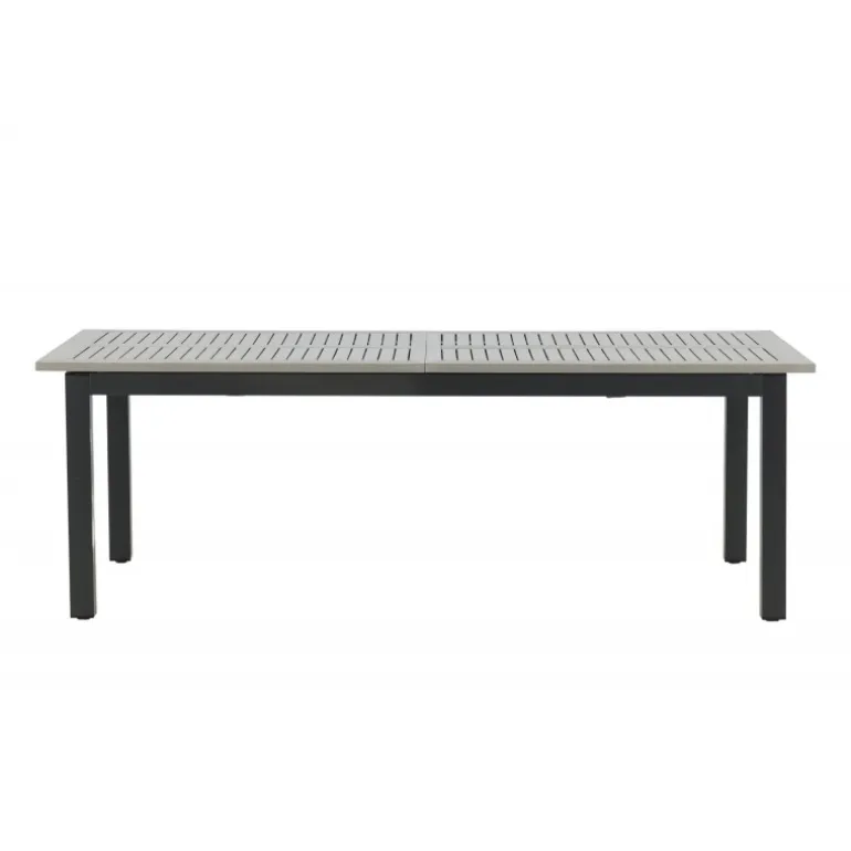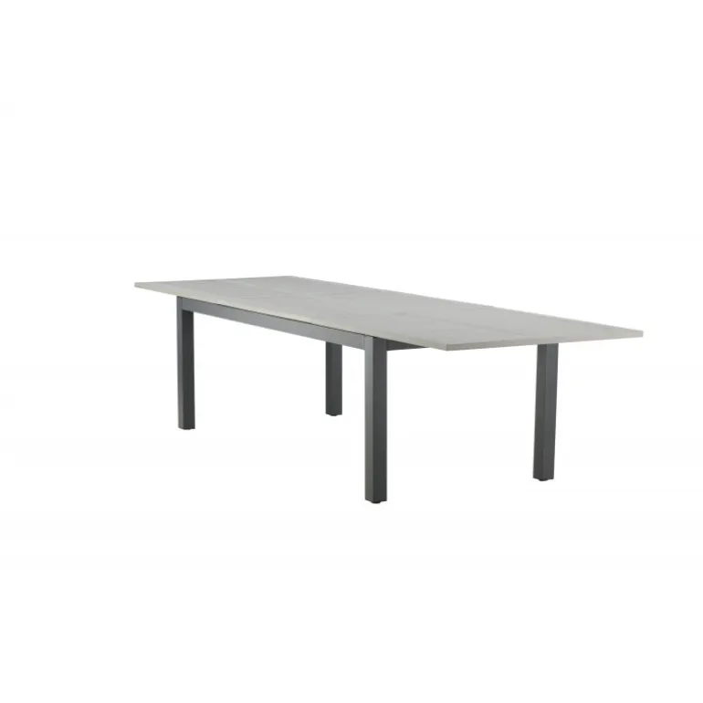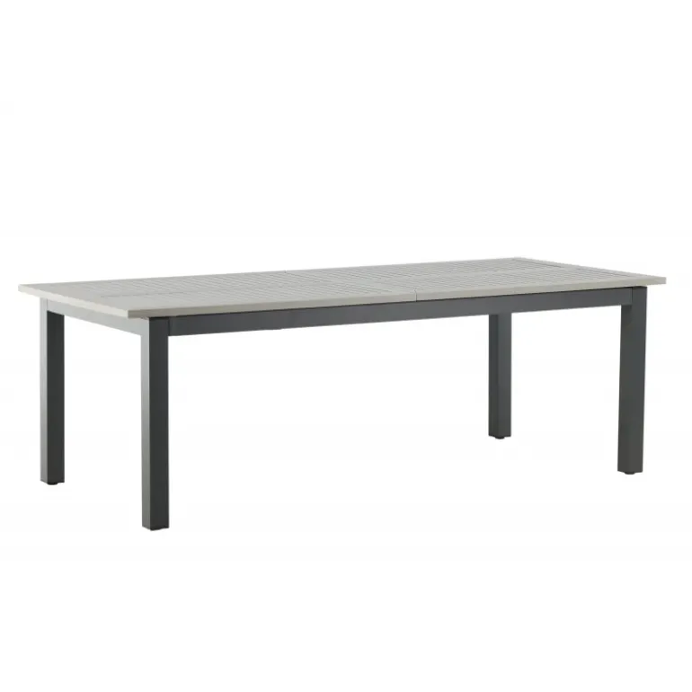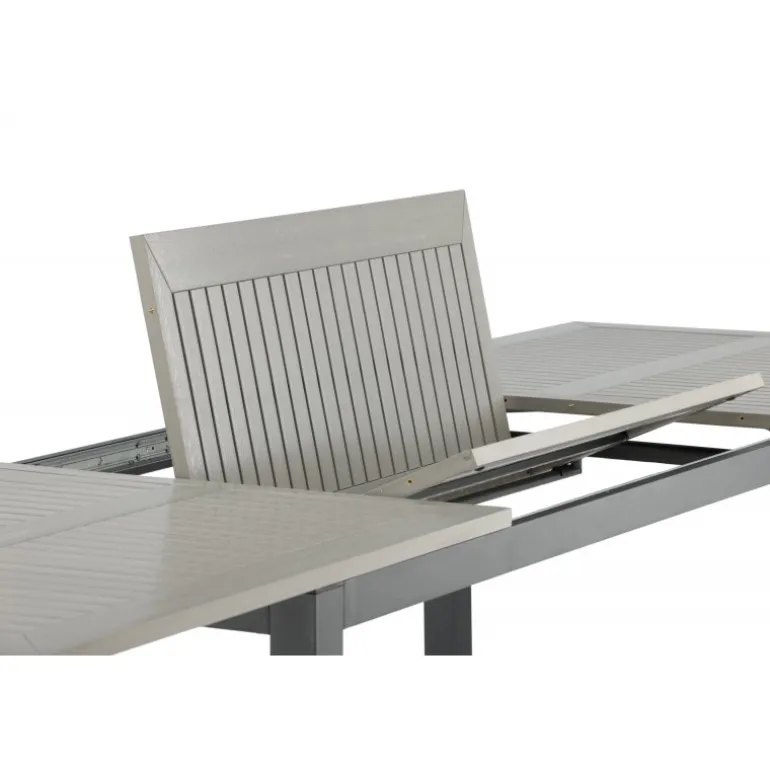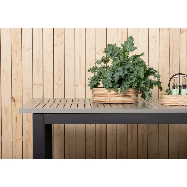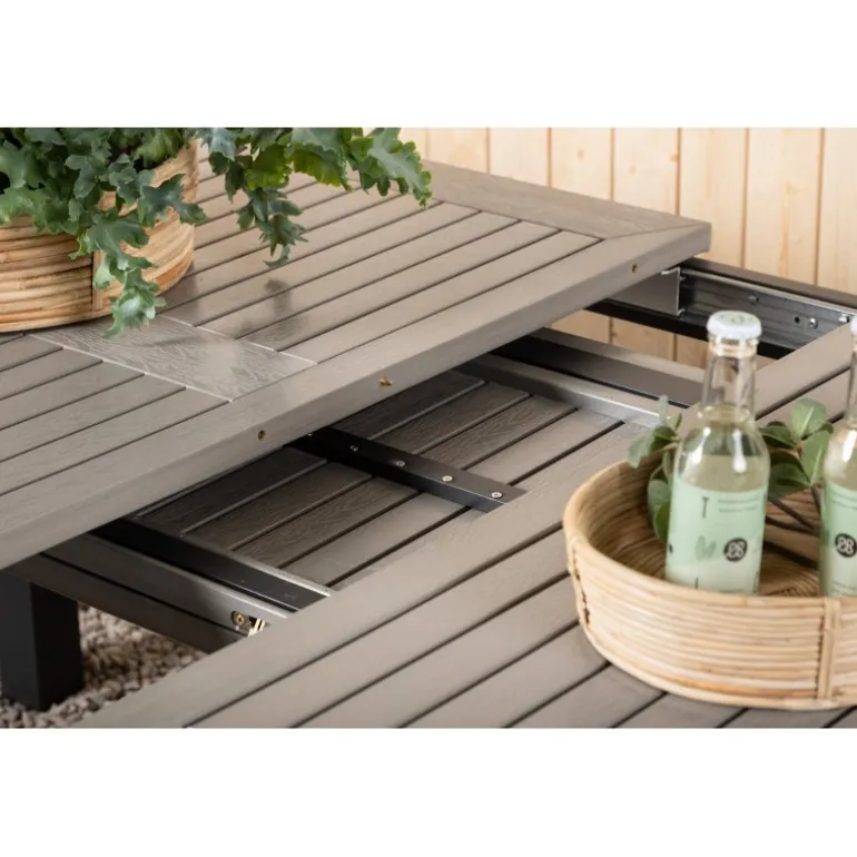 Albany er et udtrækkeligt spisebord, der har alt det rigtige – stilfuldt, praktisk og tidløst! Bordpladen er lavet af grå Aintwood, og stellet er af sort aluminium; to holdbare materialer, der giver dig et bord, der holder over tid. Den enkle nordiske form giver et robust og rent indtryk. Indret terrassen og skab et charmerende samlingspunkt for dine kære! Plejeråd: Materialet er designet til at blive brugt udendørs, da det er vejrbestandigt og modstår både fugt og skimmel. Aintwood er derfor et optimalt materiale til udendørsmøbler. Undgå skader på bordet ved at bruge underlag og ikke placere varme genstande direkte på overfladen.