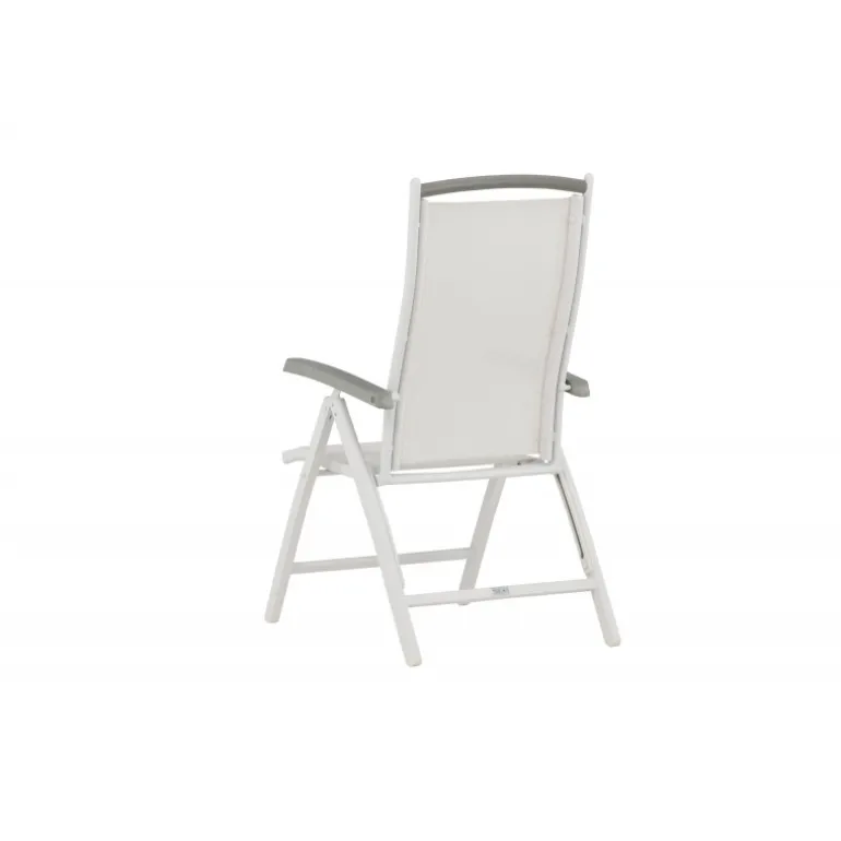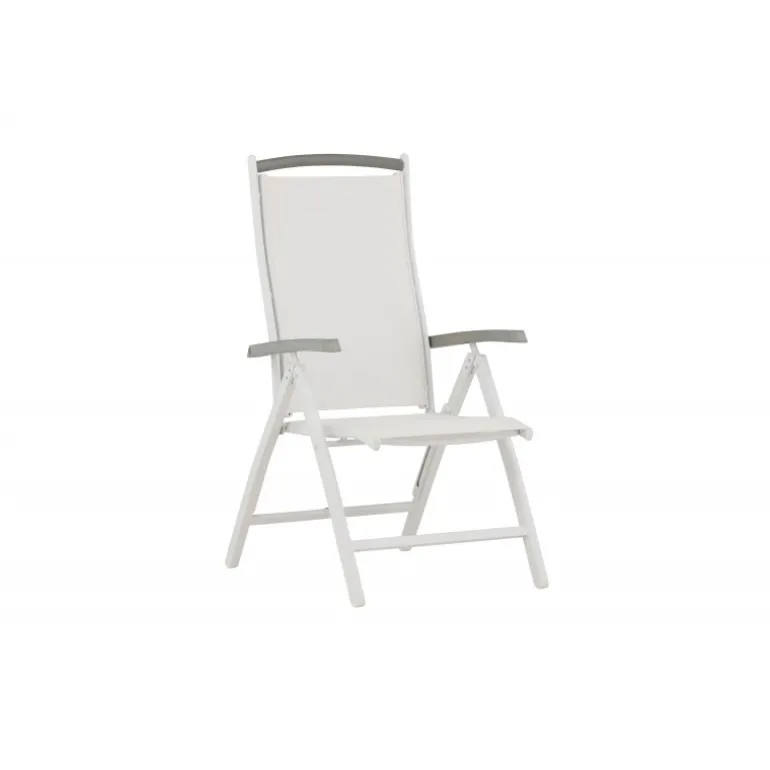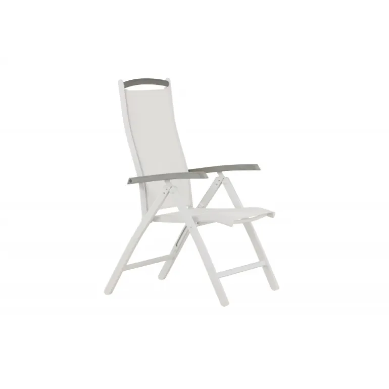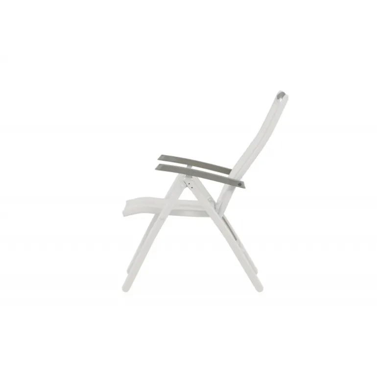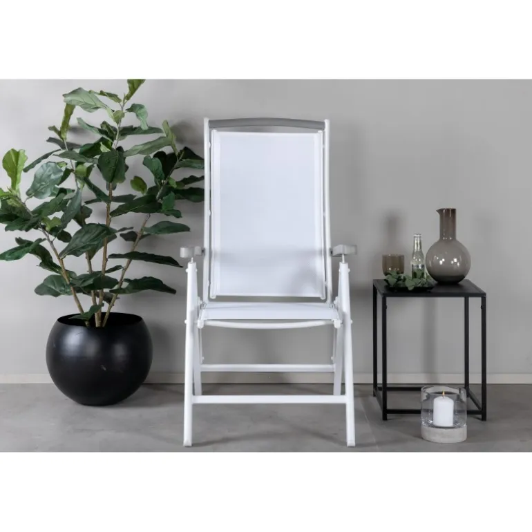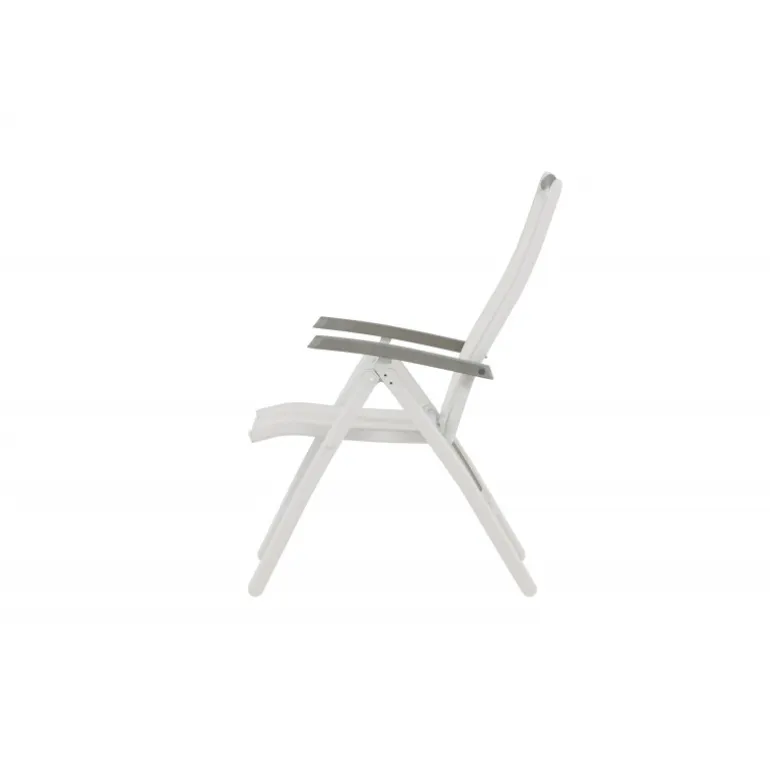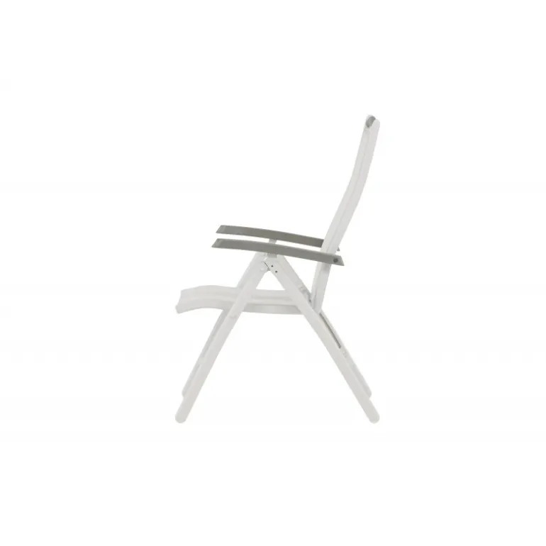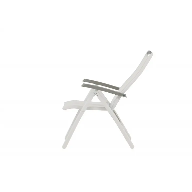 Albany – lige så komfortabel som praktisk og stilfuld! En hvid 5-Havestol med dejlige armlæn for ekstra komfort. Stolen fungerer lige så godt i haven som på altanen. Nyd sommeren på den bedste måde! Plejeinstruktion: Textilene er et syntetisk stof lavet af PVC-behandlet polyester. Materialet er vandafvisende og UV-behandlet for at modvirke solens blegning. Rengøring bør foretages cirka en gang om måneden, brug en fugtig klud og tør efter.
