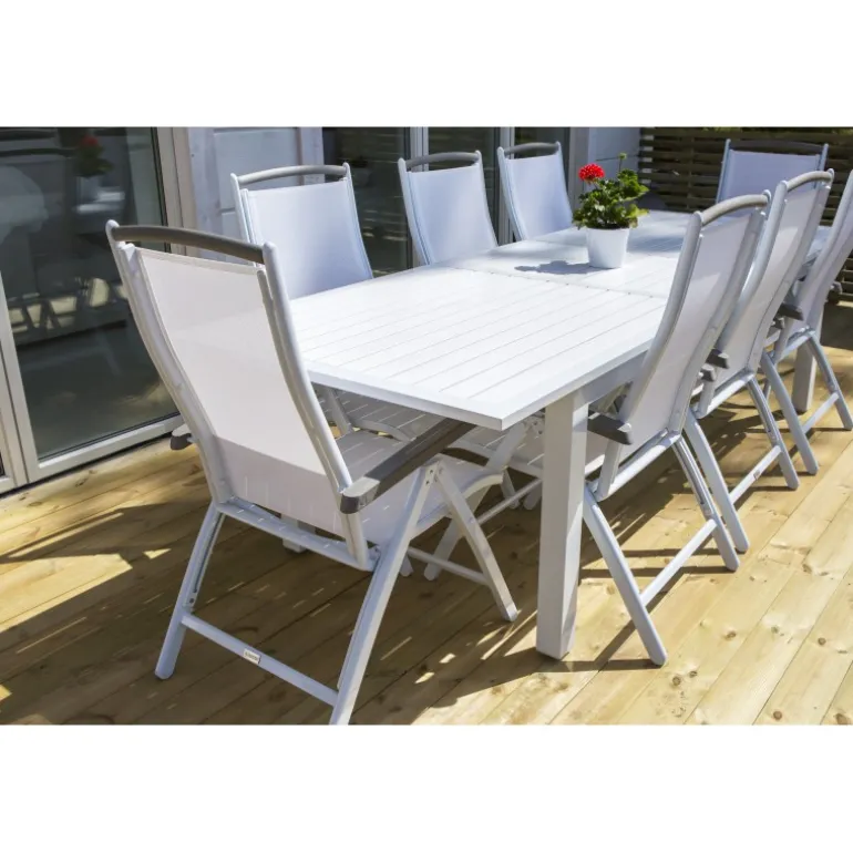 - Stilfuldt hvidt design, perfekt til både have og altan