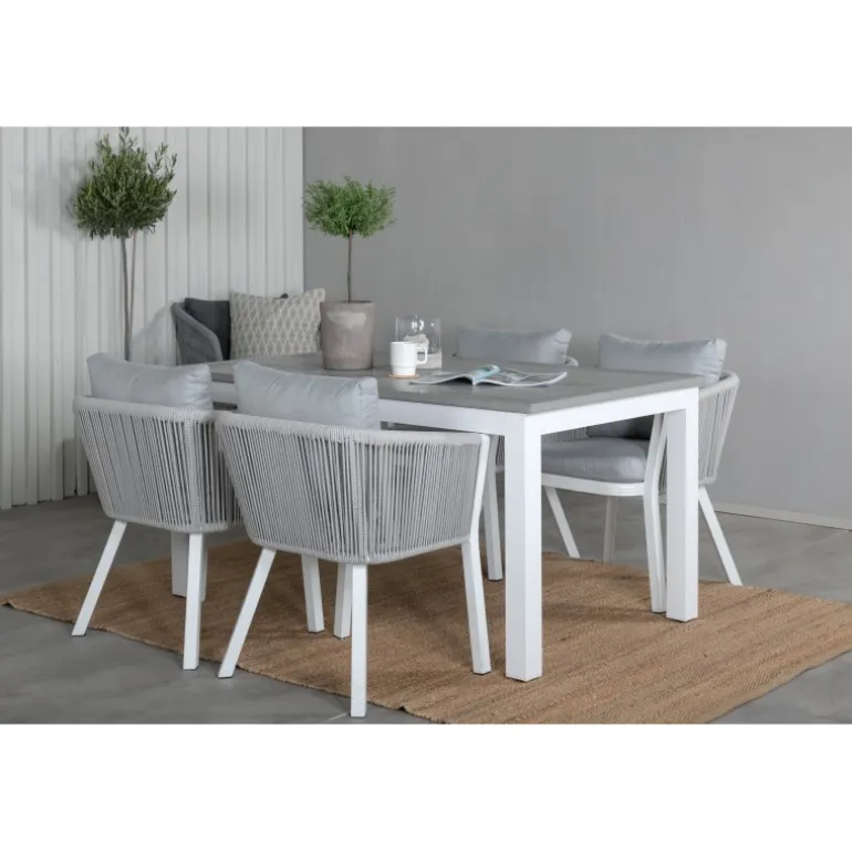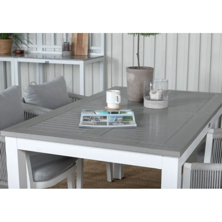 Køb af en færdigsamlet Loungesæt – Havemøbelsæt er både trendsikkert og praktisk! Her kombinerer vi vores spisebord Albany med vores siddevenlige spisebordsstole Virya. Lad hjemmets udendørsrum eller terrasse blive præget af dit nye iøjnefaldende Loungesæt – Havemøbelsæt. Albany Rektangulær Loungesæt – Havemøbelsæt er designet til at give dig maksimal komfort og stil, samtidig med at det er holdbart og let at vedligeholde. Med materialer som aintwood og aluminium er dette sæt både robust og vejrbestandigt.