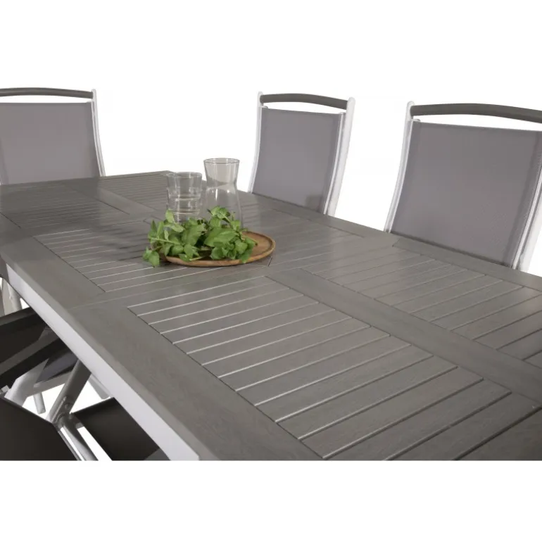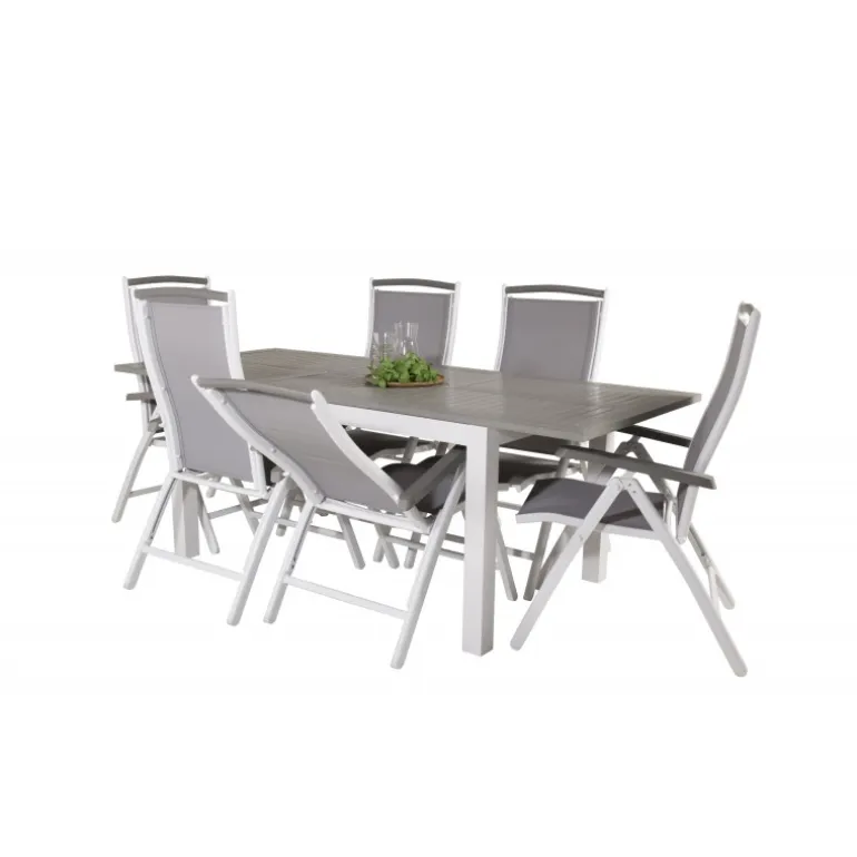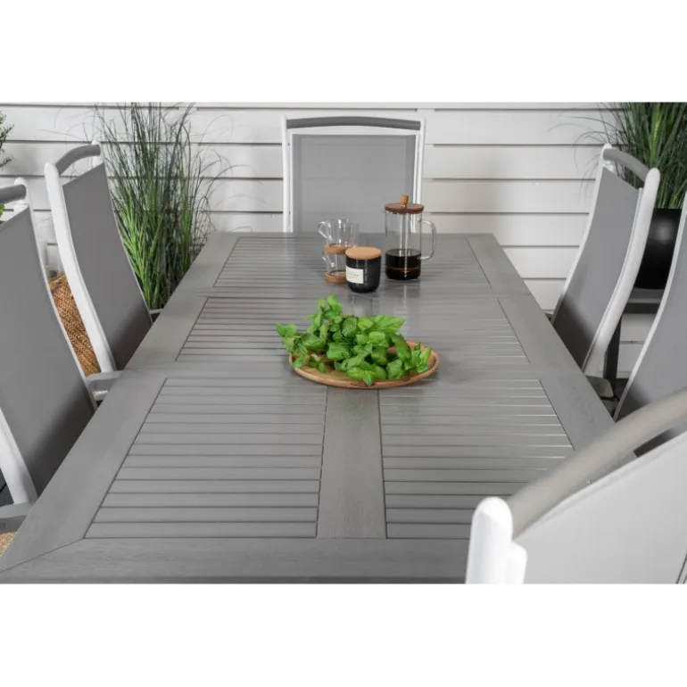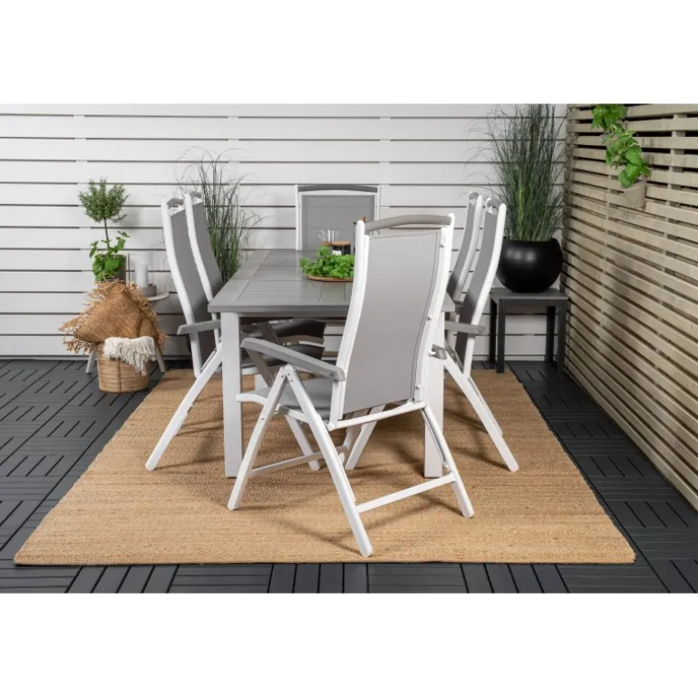 Køb af et forudkomponeret Loungesæt – Havemøbelsæt er både trendsikkert og praktisk! Her kombinerer vi vores Albany spisebord med vores siddevenlige Albany spisebordsstole med foldbare ryglæn. Lad din terrasse blive præget af dit nye iøjnefaldende Loungesæt – Havemøbelsæt, der er lige så godt til en solrig frokost som til en vidunderlig festmiddag.
