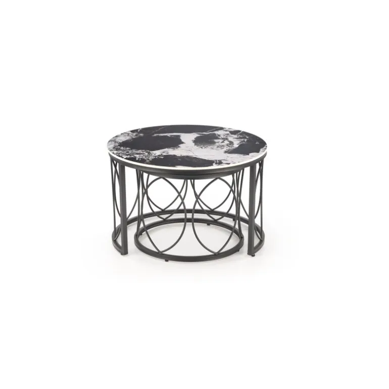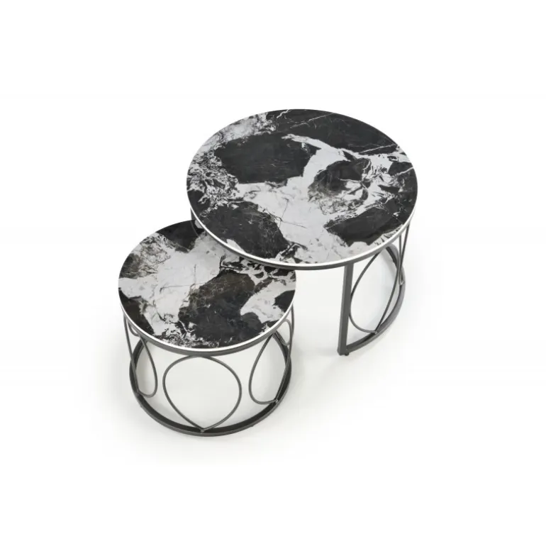 Opdater din stue med ALEXANDRA sæt af to sofaborde i Sort marmor og Sort. Disse elegante borde, fremstillet af sinteret sten og pulverlakeret stål, kombinerer holdbarhed med stil. Med dimensionerne 70/46 cm og 50/41 cm passer de perfekt ind i enhver moderne boligindretning. Sættet leveres i en praktisk pakke, som indeholder begge borde.