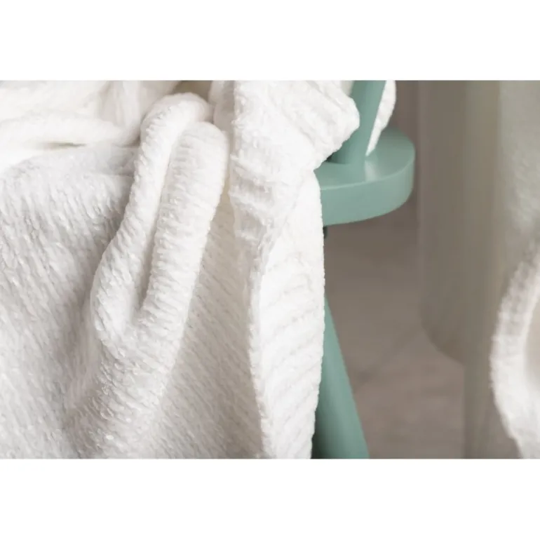 Ally Plaid i hvid er lavet af glansfuld chenille og polyester materiale, der giver en hyggelig og luksuriøs følelse. Denne plaid måler 130×170 cm og er perfekt til at holde dig varm på kolde aftener. Maskinvask ved 30 grader og hængetørring anbefales for at bevare dens kvalitet. For at undgå falmning, undgå direkte sollys. Brug en tekstilspray for at gøre stoffet lettere at rengøre.