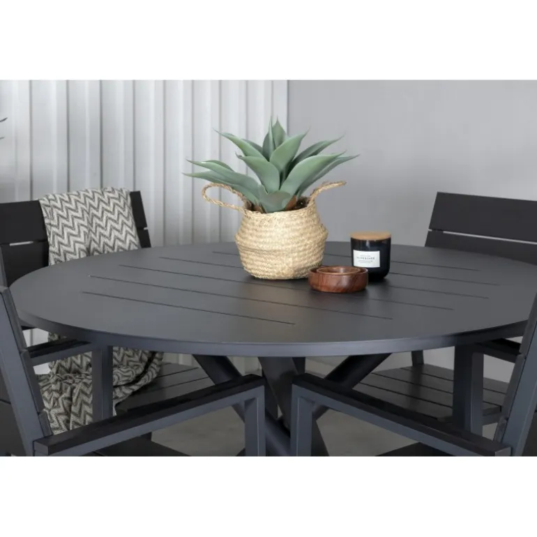 - Rundt spisebord i sort aluminium: Elegant og moderne design.