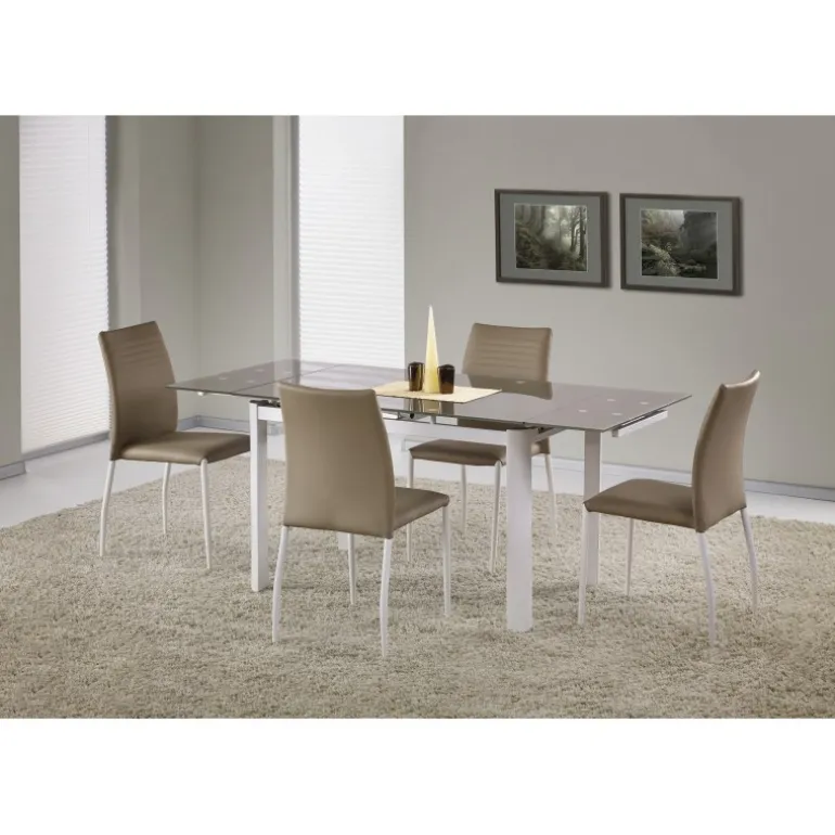 - Materialer af høj kvalitet: Glasoverflade i beige og malet stålramme i hvid for et moderne look.