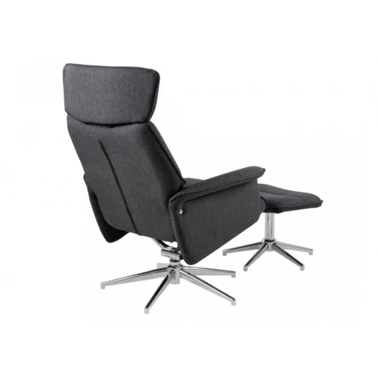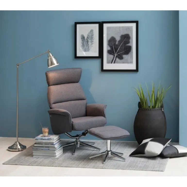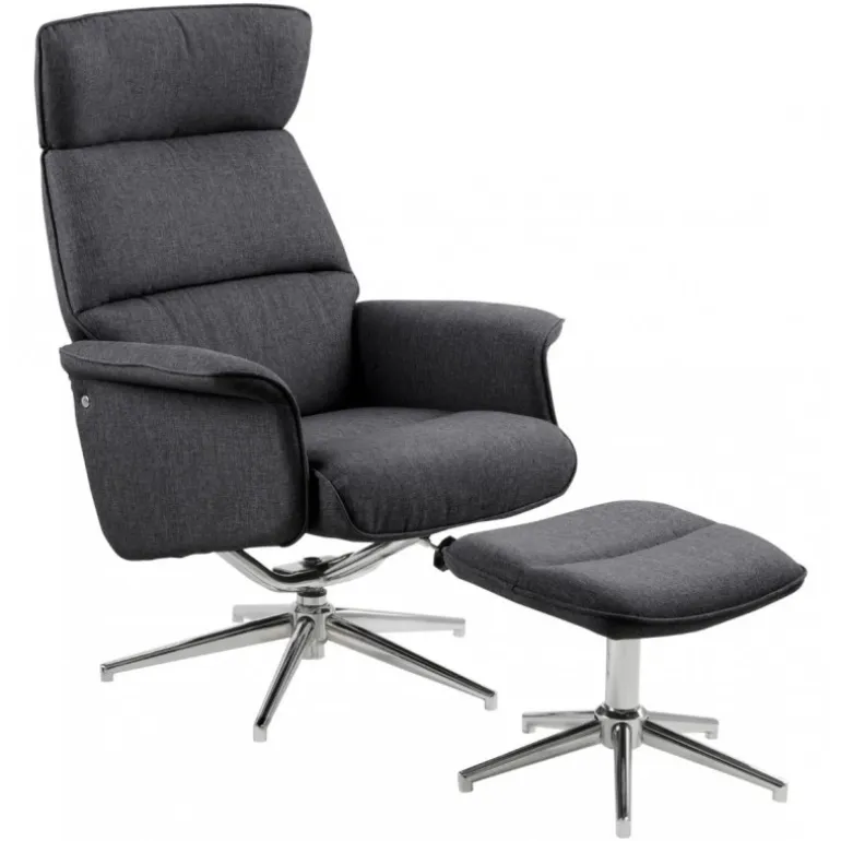 Alura hvilestol+fodskammel Calmeo stof mørkegrå 5, 5-stjernet fod krom