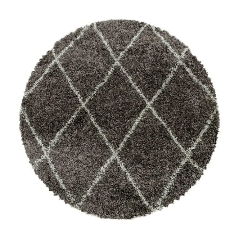 Alvor Rund Shaggy tæppe Geometrisk – Brun