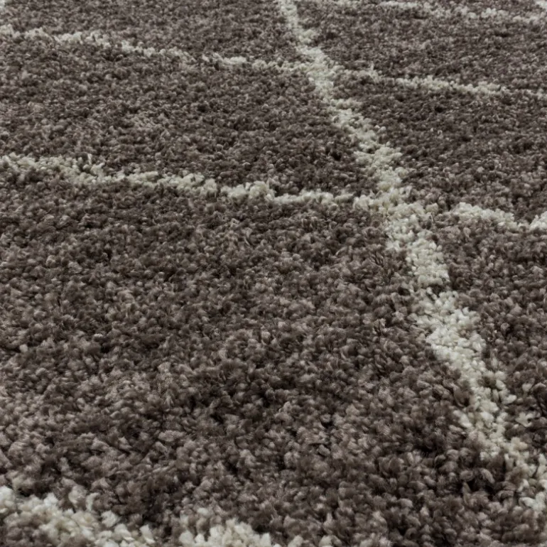 Alvor Rund Shaggy tæppe Geometrisk - Brun