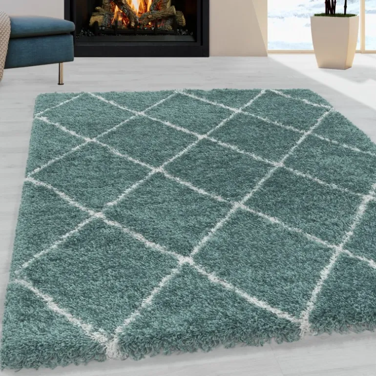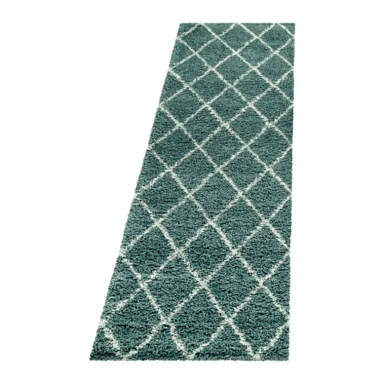 Alvor Shaggy Tæppeløber Geometrisk – Blå