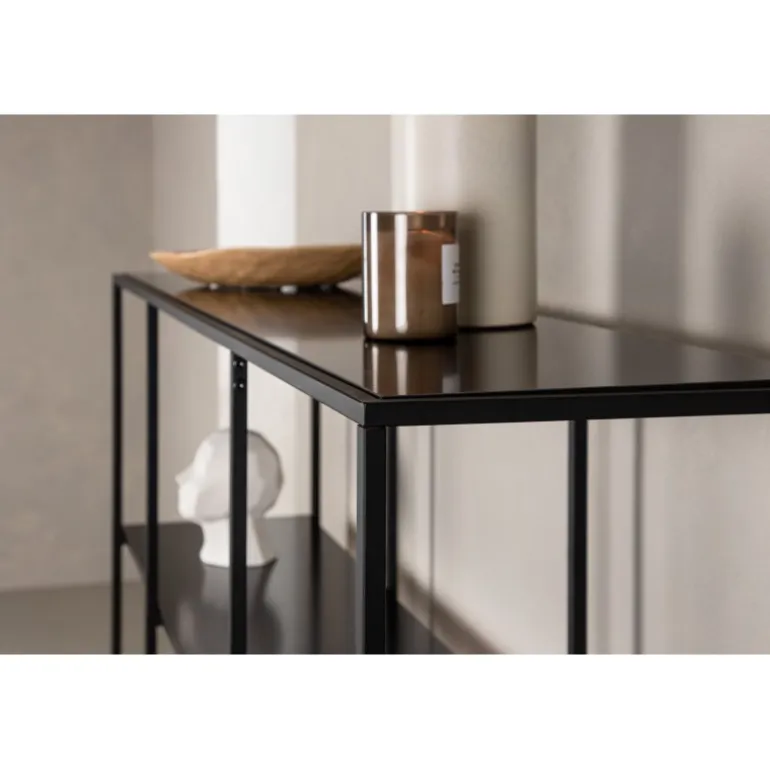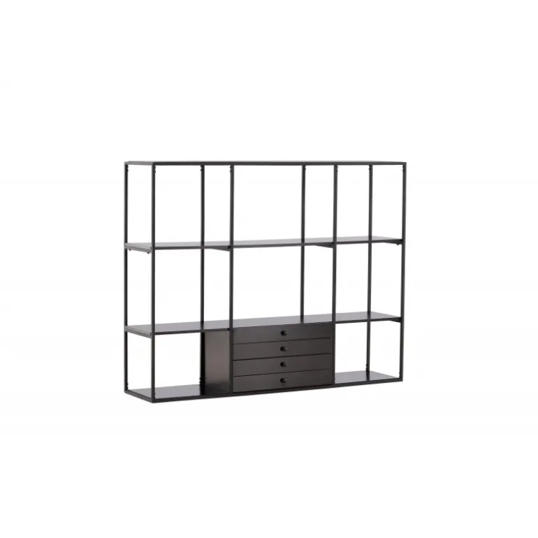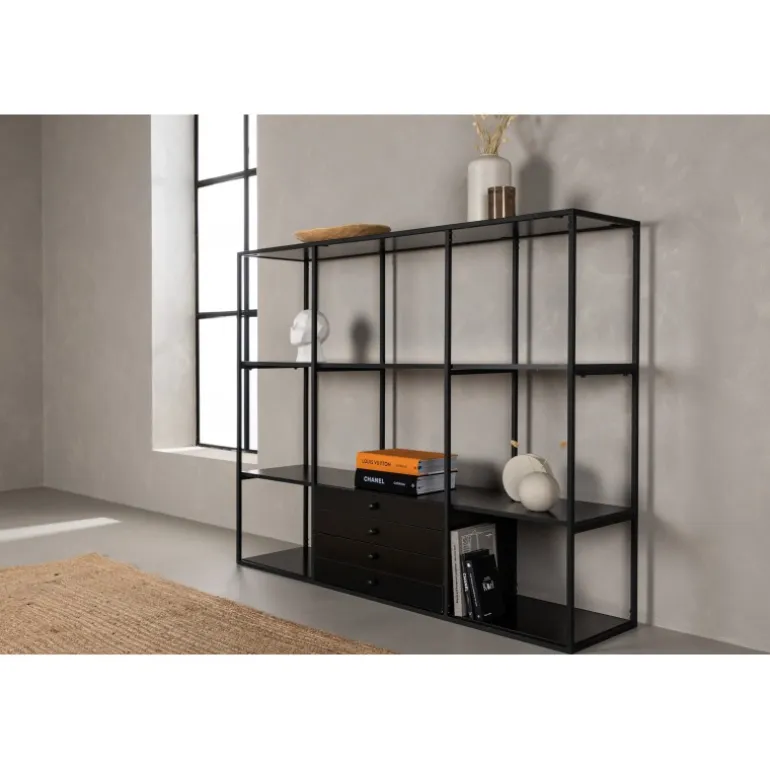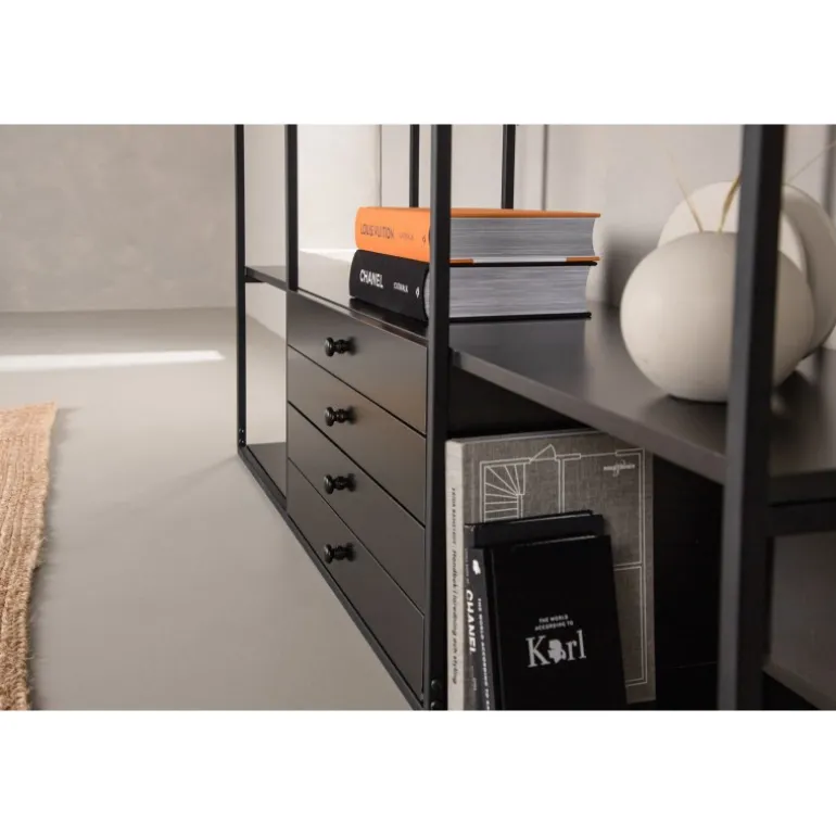 Oplev den stilfulde og funktionelle Amarillo Skab fra Venture Home kollektionen. Dette skab kombinerer skandinavisk design med praktisk opbevaring og tilbyder både skjult og synlig opbevaringsplads. Toppladen og hylderne er lavet af holdbart MDF, mens rammestrukturen er fremstillet i stål. Den gennemgående sorte farve gør det nemt at matche med andre møbler og holder sig moderne over tid. Pynt skabet med smukke dekorationer, lys og vaser for at skabe en mere hyggelig hjemindretning.