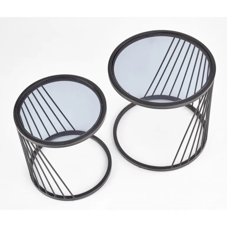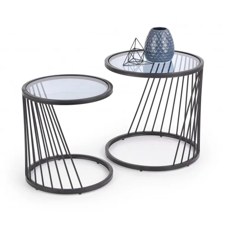 ANTILLA sæt af to sofaborde er den perfekte kombination af stil og funktionalitet til dit hjem. Med dimensioner på 50/50 cm og 42/45 cm passer disse borde ideelt ind i enhver stue eller opholdsrum. Lavet af hærdet glas og pulverlakeret stål, tilbyder de både holdbarhed og et moderne udseende. Den røgfarvede glasoverflade og Sorte stålramme tilføjer et strejf af elegance og sofistikation til din indretning.