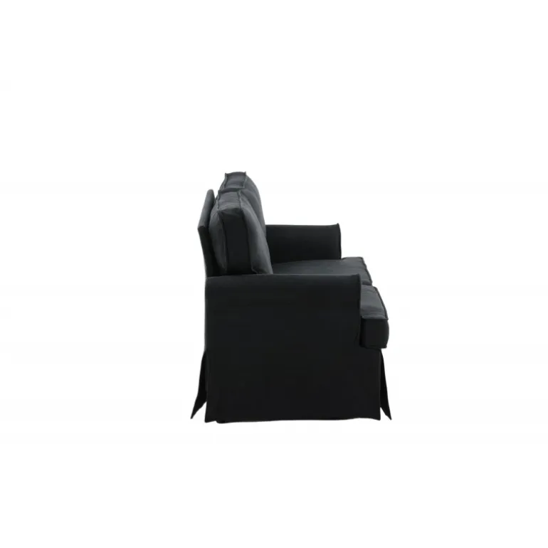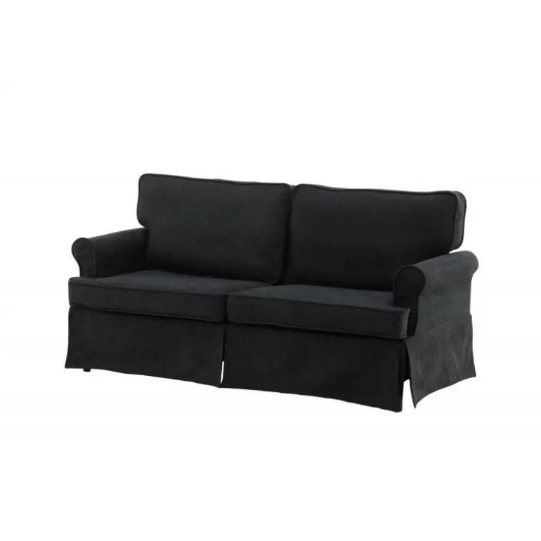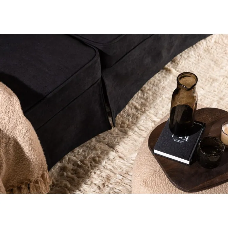 Vores Anton 2 personers sofa er indbegrebet af hygge, luksus og stil. Denne komfortable sofa fra Anton-serien bringer en utrolig stilfuld og indbydende stemning til dit hjem og forlænger din værdifulde afslapningstid. Den dristige sorte fløjlsbeklædning er både komfortabel og trendy, og den giver en elegant glans. Designet er tidløst med bløde skandinaviske former og har en charmerende sofaovertræk, der skjuler metalbenene. Giv dig selv et dejligt sted at slappe af, og lad denne sofa blive hjertet i din stue! Plejeråd: Fløjl har tendens til at få trykmærker, når luven ligger ned. Trykmærkerne kan få stoffet til at se slidt ud, hvilket er normalt for denne type materiale. Afhængigt af hvordan lyset falder, kan stoffet ændre sig i forskellige nuancer.