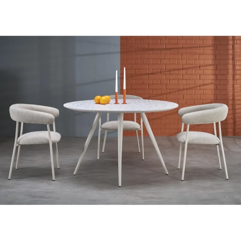 - Moderne design: Lastrico bordplade kombineret med hvidlakerede stålben.