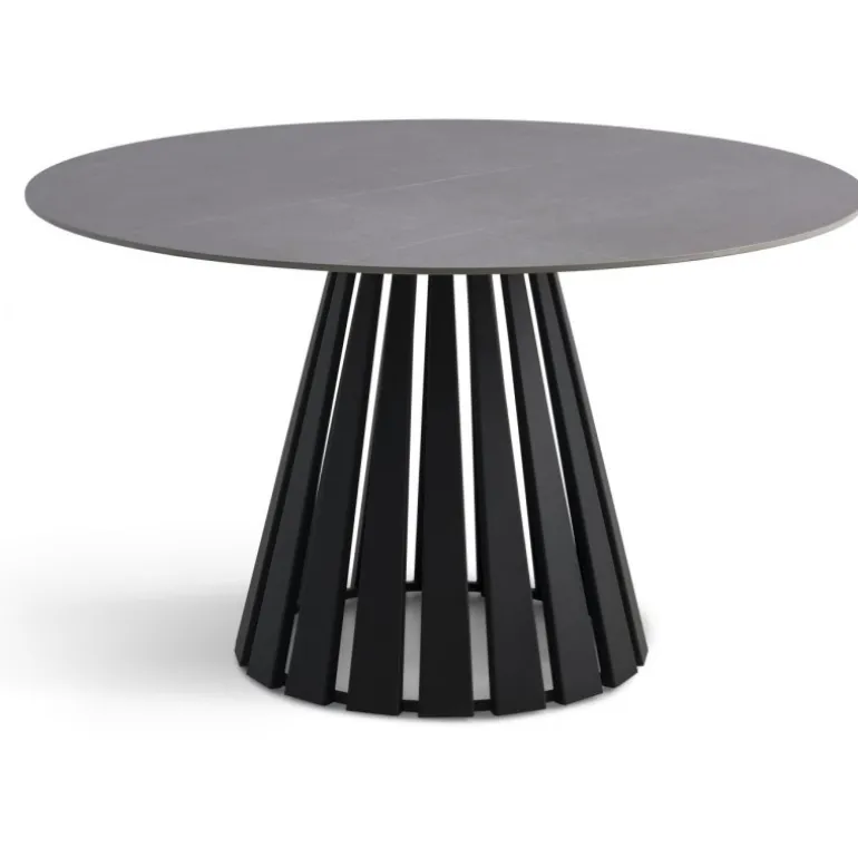Bordpladen er konstrueret i grå keramik med en forbløffende marmorlignende finish, der tilføjer et strejf af elegance til ethvert rum. De sorte metalben sikrer ikke blot stabilitet, men tilføjer også et moderne og sofistikeret udtryk.