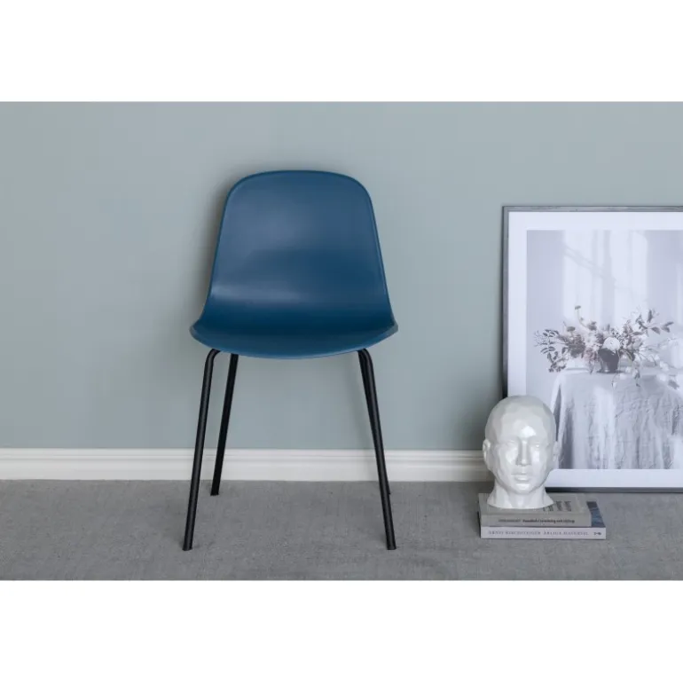 Pynt hjertet af dit hjem med et herligt farvestrejf i holdbart materiale! Spisebordsstol fra Arctic-serien er lige så praktisk, som den er bekvem. Med ben i sort pulverlakeret metal og en blidt afrundet ryg og sæde i blå solid plastik, er denne spisebordsstol nem at holde ren og frisk. Kombiner med et hyggeligt spisebord og nyd behagelige måltider! Noget samling påkrævet.