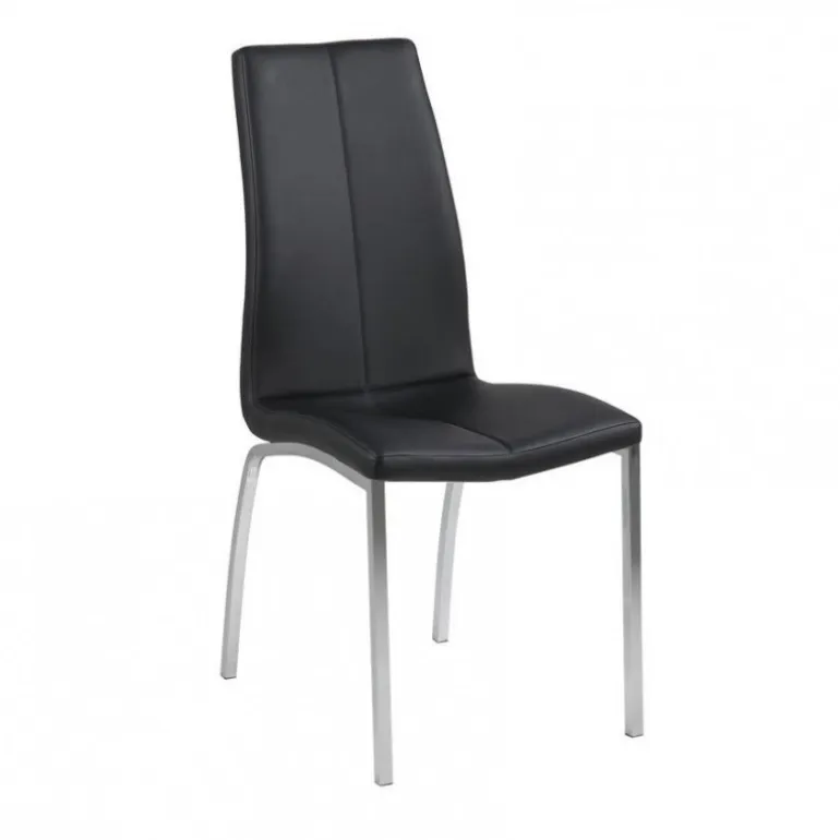 En flot og elegant spisebordsstol fra Stella-serien, der udstråler rene linjer og raffinement. Med sine buede kromben og sorte tekstillæder, får du en komfortabel og funktionel stol, der ikke går på kompromis med design.