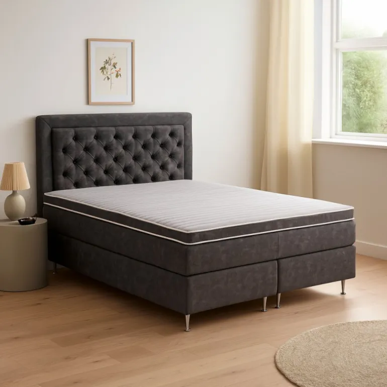 - Samlet komforthøjde ca. 74 cm (bund 28 cm + madras 21 cm + top 10 cm + ben 15 cm)