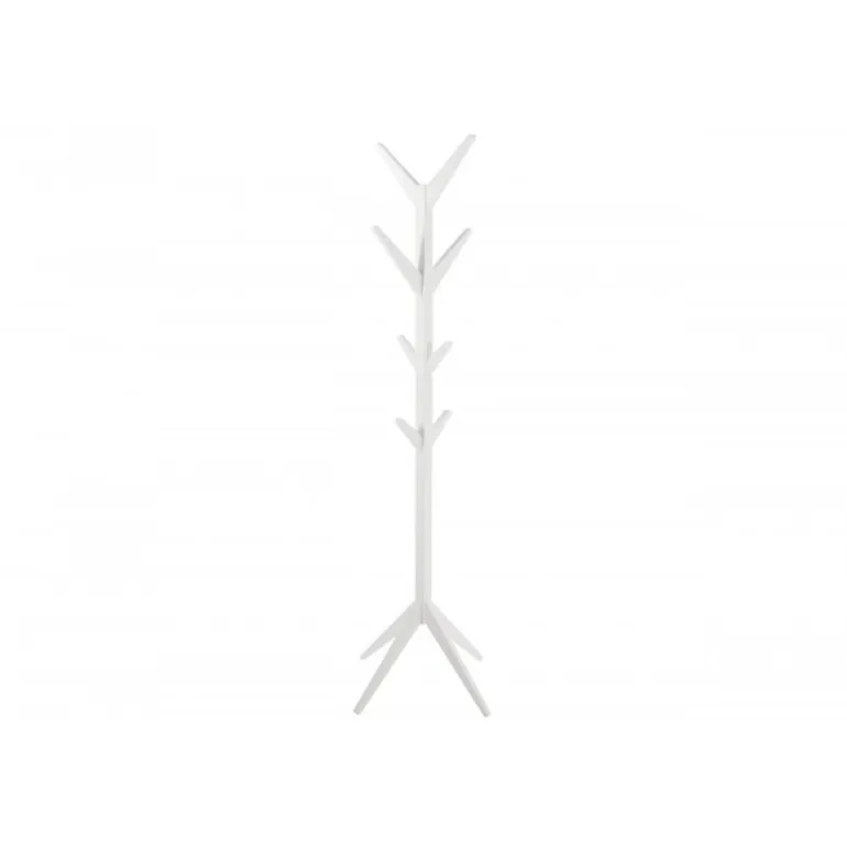 Smart hvid stumtjener med 8 opbevaringskroge i lakeret træ. Ideel til opbevaring af jakker, halstørklæder, tasker etc.