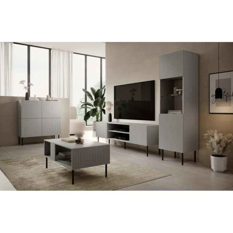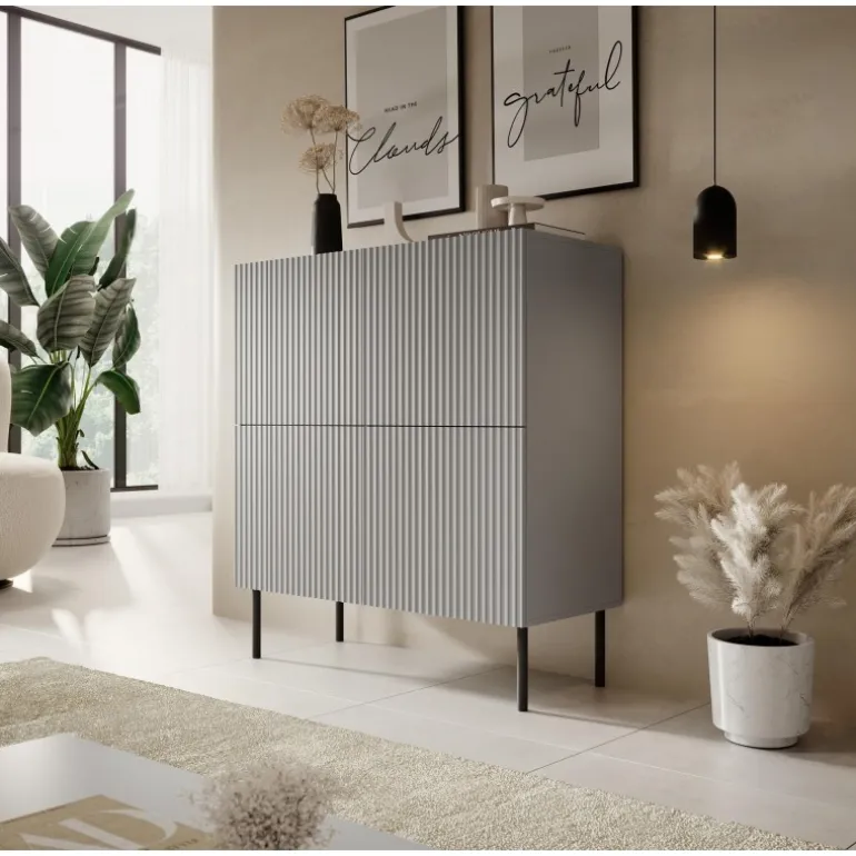 ASENSIO KM-2 kommode i lysegrå og Sort er det perfekte valg til at tilføje et moderne touch til dit hjem. Med dimensioner på 100/42/110 cm passer denne kommode let ind i forskellige rum, fra soveværelset til stuen. Lavet af lamineret spånplade og lamineret MDF, kombinerer den holdbarhed med stil. De Sorte metalben giver ekstra stabilitet og et elegant udseende. Denne kommode leveres i to kasser og vejer netto 38.600 kg og brutto 39.600 kg.