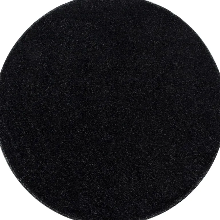 Ata Rund Kortluvet tæppe Ensfarvet – Antracit