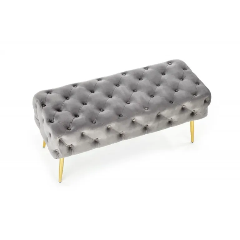 Oplev elegance og komfort med ATHENA Bænken. Denne stilfulde bænk er designet i en kombination af luksuriøst velourstof i grå og kromstål ben i guld, hvilket tilføjer et sofistikeret touch til enhver indretning. Med dimensionerne 100/45/40 cm passer denne bænk perfekt ind i både små og store rum. ATHENA Bænken er ikke kun et smukt møbel, men også yderst funktionel og holdbar, ideel til din daglige afslapning.