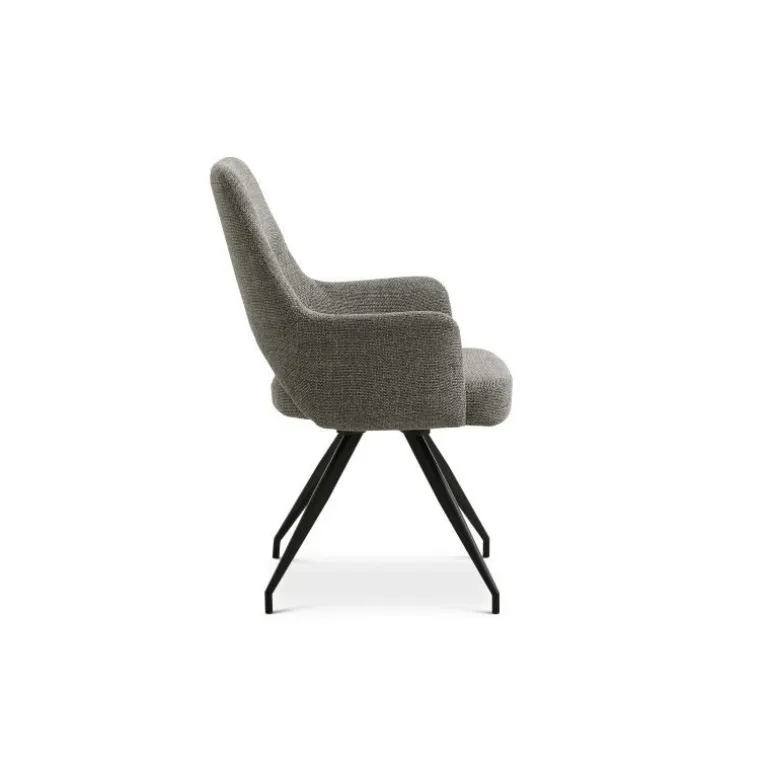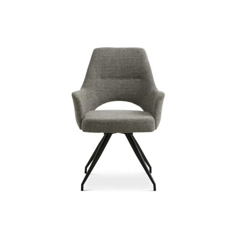 Stolen er produceret i Grå Chacha stof og har en 180 graders auto-returfunktion. Metalbenene er belagt med mat sort pulver.