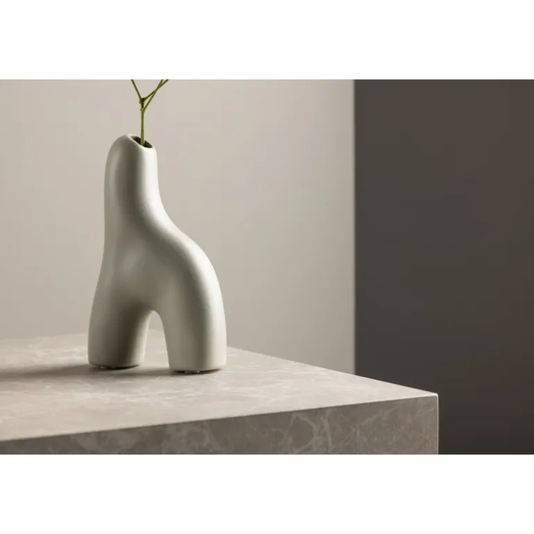 Aya er en fortryllende legesyg vase, der straks fanger øjet. Lavet af holdbart stentøj og med en højde på 16 cm er denne vase både en unik dekoration og et kunstværk i sig selv. Med sin karakteristiske og iøjnefaldende form er Aya en smagfuld tilføjelse til dit hjem. Den lysegrå farve giver Aya en subtil og elegant karakter, der passer godt til forskellige indretningsstile. Vasens legesyge form gør den til et udtryksfuldt element i rummet, og den bliver hurtigt et samtaleemne blandt besøgende. Aya er ikke bare en vase; den er en kunstnerisk detalje, der tilføjer et personligt præg til dit hjem. Dens unikke form gør den perfekt til enkelte blomster eller små buketter. Placer den på vindueskarmen, bogreolen eller skænken for straks at løfte indtrykket af dit rum. Lad Aya være et kreativt og legesygt indslag i dit hjem. Giv plads til dens unikke form og lad den udtrykke din personlige stil. Med Aya får du mere end bare en vase; du får en kunstnerisk skulptur, der bringer glæde og karakter til din indretning.