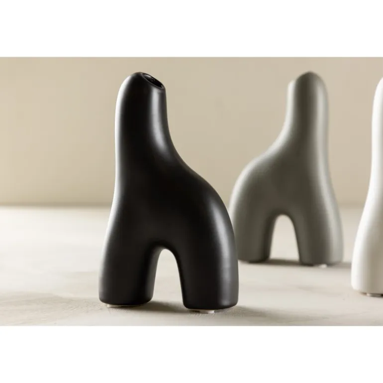 Udforsk skønheden i Aya, en sort vase fremstillet i stentøj. Med en højde på 16 cm bliver Aya en imponerende interiørdetalje og en del af en serie, der fås i flere forskellige farver, så du kan finde din personlige favorit. Aya har en unik form, der giver den en særpræget karakter, hvilket gør den til et kunstnerisk supplement til din indretning. Den sorte farve tilføjer et elegant touch og kan nemt komplementere forskellige stilarter og farver i dit hjem. Lad Aya tage hovedrollen og skabe en atmosfærisk ambiance i dit hjem. Denne elegante vase er både smuk og funktionel, hvilket giver dig mulighed for at fremhæve skønheden i dine blomster eller stå frem på egen hånd.