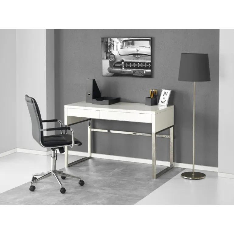 Oplev B32 skrivebordet, perfekt til enhver moderne arbejdsplads. Med dimensionerne 120/60/76 cm er dette skrivebord både stilfuldt og funktionelt. Materialet er lavet af højglanslakeret MDF og kromstål, hvilket giver et elegant og holdbart design. Den hvide farve passer perfekt til ethvert kontor eller hjemmekontor, og det robuste design sikrer langvarig brug. Uanset om du arbejder hjemmefra eller på kontoret, vil B32 skrivebordet forbedre din arbejdsoplevelse.