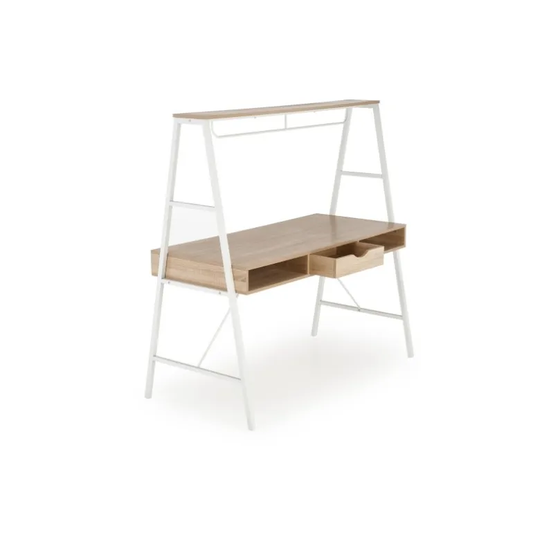 Opgrader dit kontor med dette stilfulde B48 skrivebord i Sonoma Eg og Hvid. Med dimensionerne 139/60/140 cm tilbyder dette skrivebord en dobbelt arbejdsstation, perfekt til både samarbejde og individuel koncentration. Fremstillet af holdbart lamineret spånplade med melamin og pulverlakeret stål, kombinerer det robusthed med et moderne design. Dets elegante finish i Sonoma Eg og Hvid vil tilføje en sofistikeret touch til enhver arbejdsplads.