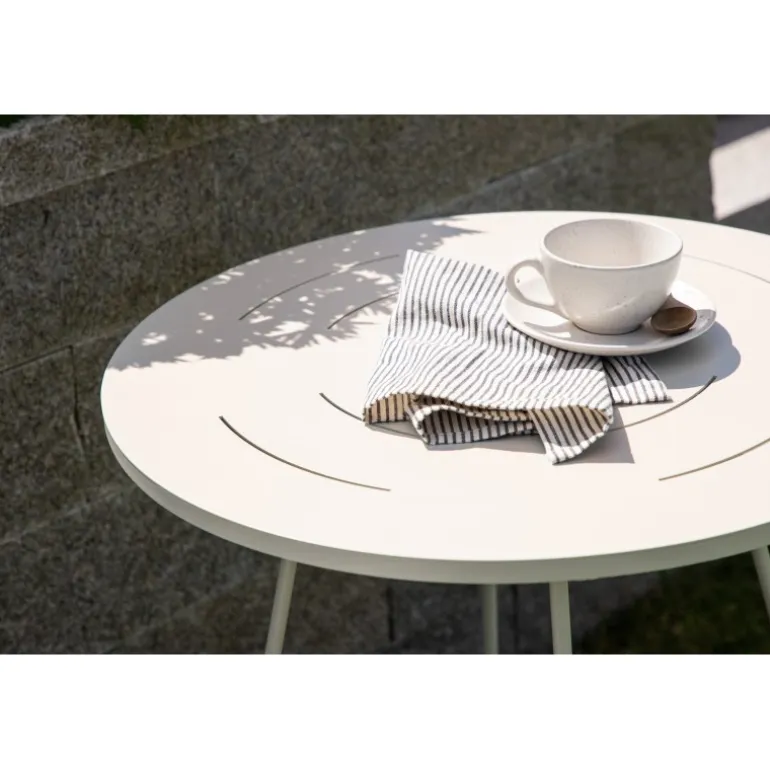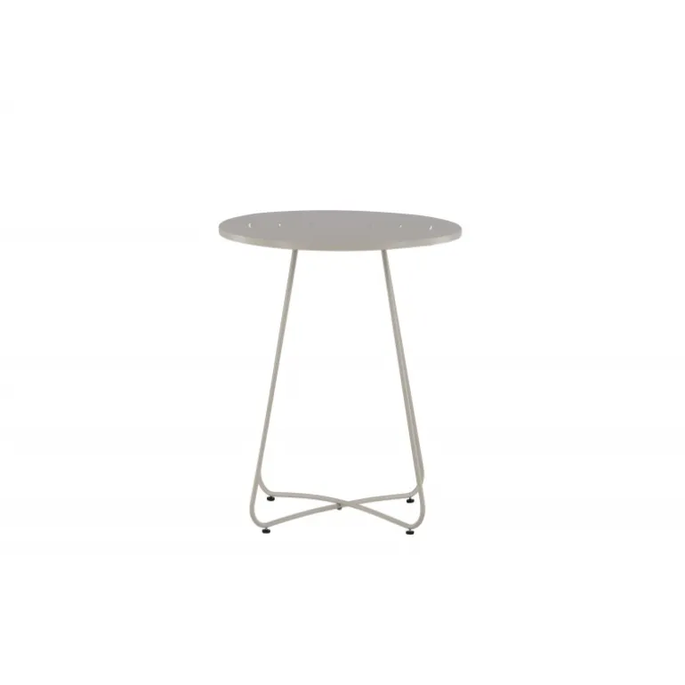 Bacong – et stilfuldt cafébord i en tidløs beige farve og smukt design. Fremstillet af beige stål, hvilket gør bordet både praktisk og holdbart. Den lette vægt gør, at bordet er nemt at flytte og passer lige så godt ude i haven som på den lille altan. Den runde bordplade og smalle ben giver et minimalistisk indtryk og er perfekt til eftermiddagskaffen. Nyd sommerens vidunderlige øjeblikke!