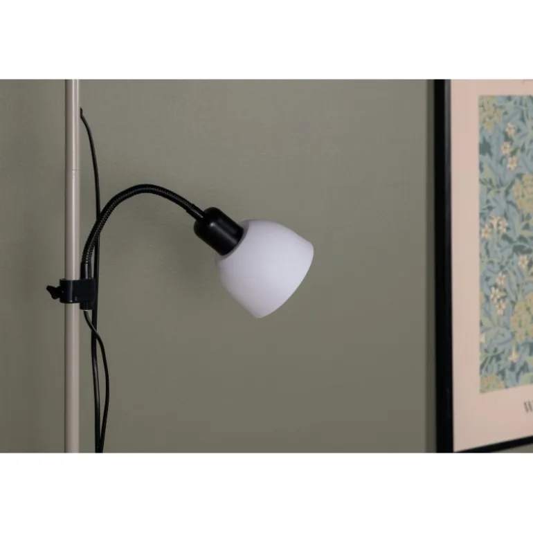 Bagasi er en høj gulvlampe med en fleksibel arm i et elegant og moderne design. Den fleksible arm kan vinkles og er perfekt til punktbelysning. Lampen passer perfekt ved siden af sofaen eller i soveværelset, hvor du kan kombinere generel belysning med punktbelysning!