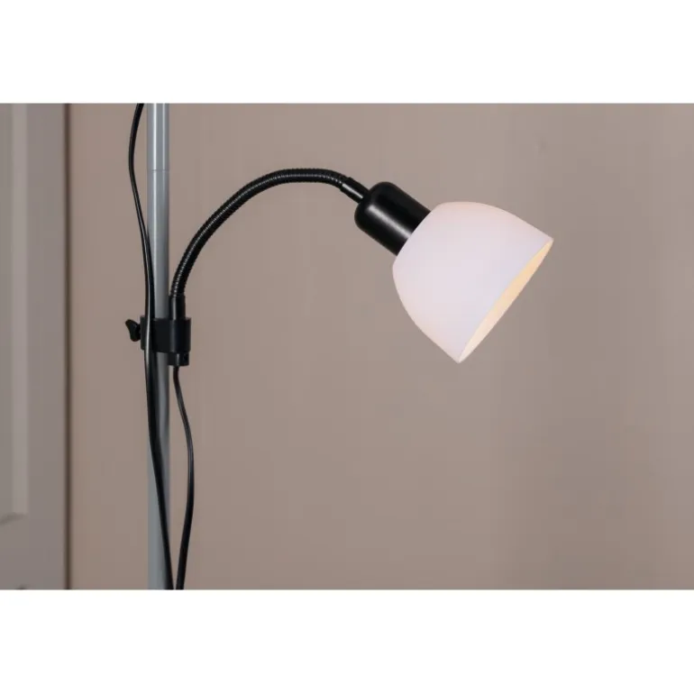 Bagasi er en høj gulvlampe med en fleksibel arm i et elegant og moderne design. Den fleksible arm kan vinkels og er perfekt som punktbelysning. Lampen passer perfekt ved siden af sofaen eller i soveværelset, hvor du kan kombinere generel belysning med punktbelysning. Stålmaterialet sikrer holdbarhed og stil, mens de tre farvevalg (Sort, Lysegrå, Hvid) gør det nemt at matche din indretning.
