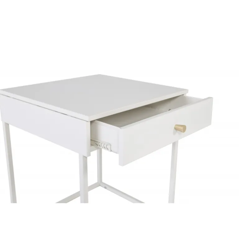 Bakal natborde tilbyder alt, hvad du kunne ønske dig både praktisk og æstetisk. Med sin stilfulde, lige nordiske form er designet moderne og luftigt. Skuffen med messingknop giver nem opbevaring af alt, hvad du vil have inden for rækkevidde. Det pulverlakerede hvide stål giver natbordet en elegant finish og gør det nemt at matche med anden indretning. Tip: Fungerer også godt som hjørnebord eller sidebord i stuen. Let montering kræves. Plejeråd: Aluminium og krom er to materialer, der afviser snavs og væsker. Dog skal du være opmærksom på, at vand kan forårsage pletter og rust. Sørg derfor for at tørre overfladen af med en blød fugtet klud og sæbevand. Hvis pletter eller rust sidder for hårdt fast, anbefales en blød klud fugtet i ren alkohol.