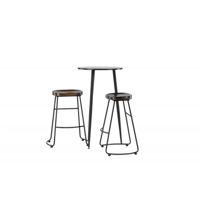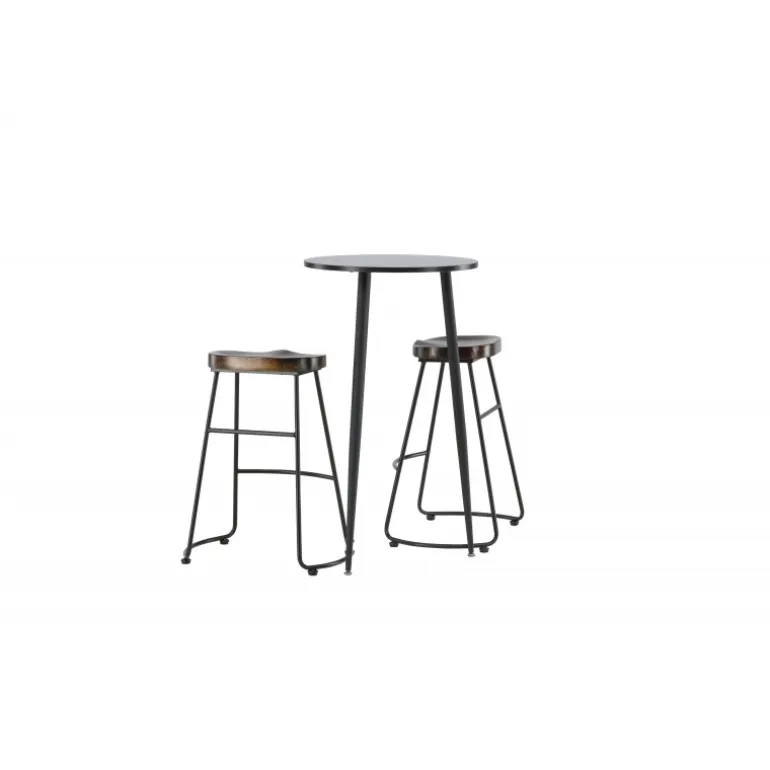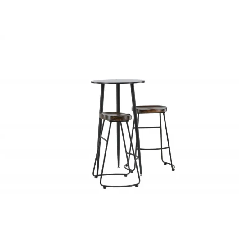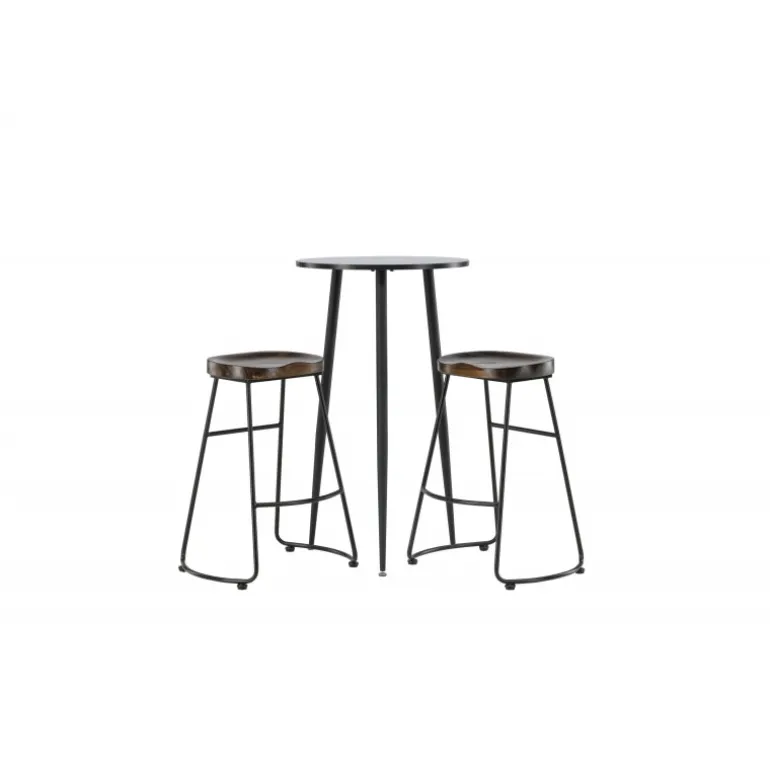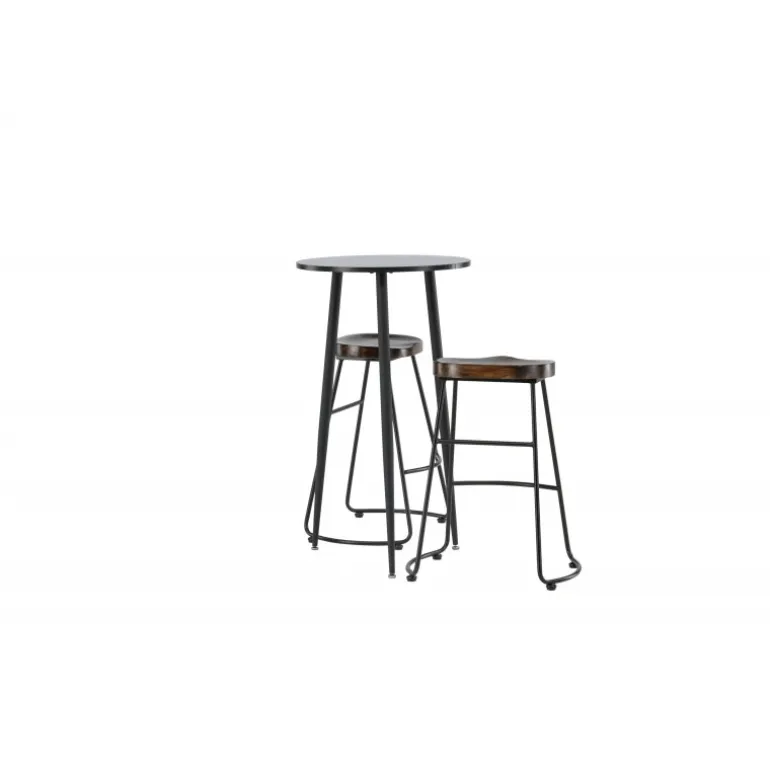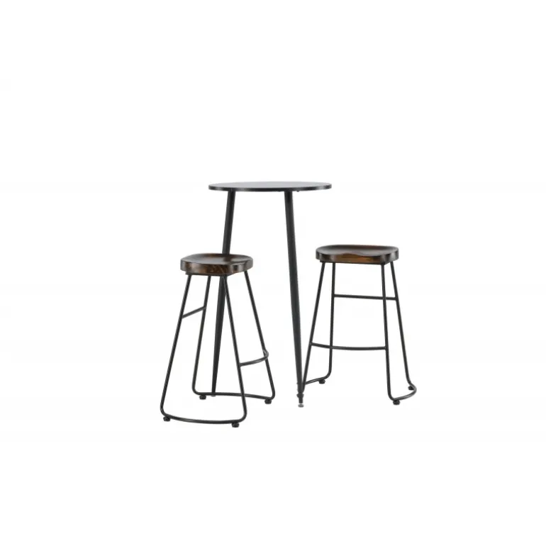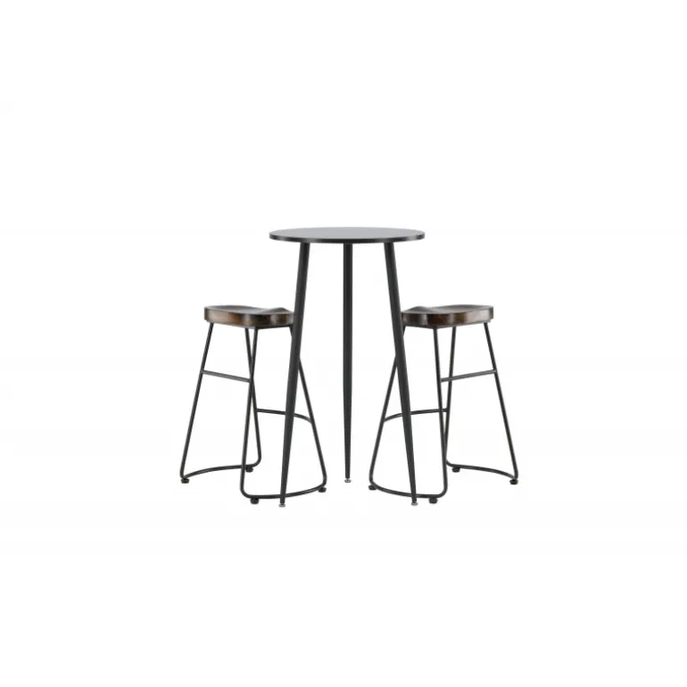 Rustikt og stilfuldt! Den vidunderlige Plaza barbord har en rund bordplade i sort MDF, og bordbenene er let udadbuede i sort metal. Her i en stilfuld kombination med barstole fra Ozark-serien. Stolen har et klassisk design med et sæde i mørkt træ, formet for at være så komfortabel som muligt. Den sorte stålbase er stabil og har en integreret fodstøtte. Indret det lille køkken i jordfarver! Borddimensioner: 60 cm.