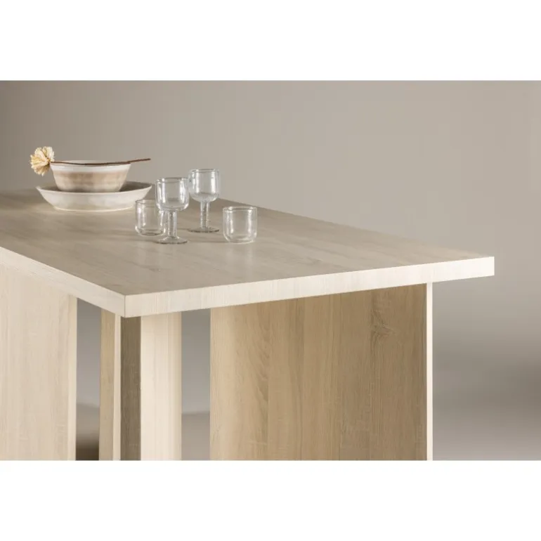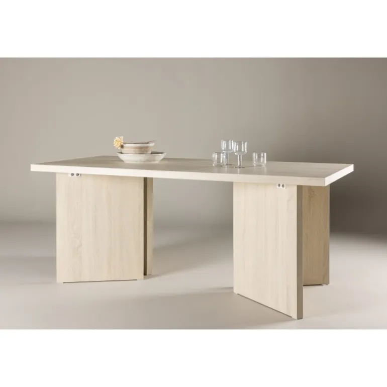 Udforsk Bassholmen – det indbydende spisebord, der vil blive hjertet i dit hjem. Fremstillet af hvidvasket MDF-materiale, måler dette bord 180×90 cm og giver masser af plads til middage med venner og familie. Bassholmen er ikke bare et praktisk møbel; det er også en elegant interiørdetalje, der tilføjer tidløs charme til dit rum. Med sit elegante design og generøse størrelse er dette bord perfekt til både hverdagsmåltider og festlige lejligheder. Uanset om du bruger det til en stille middag derhjemme eller til at være vært for en fest, vil Bassholmen skabe en indbydende atmosfære og tilføje et strejf af elegance til dit rum. Giv dit hjem en stilfuld opdatering med Bassholmen spisebord.