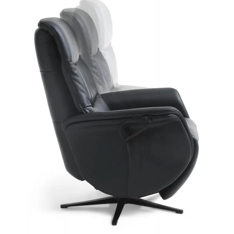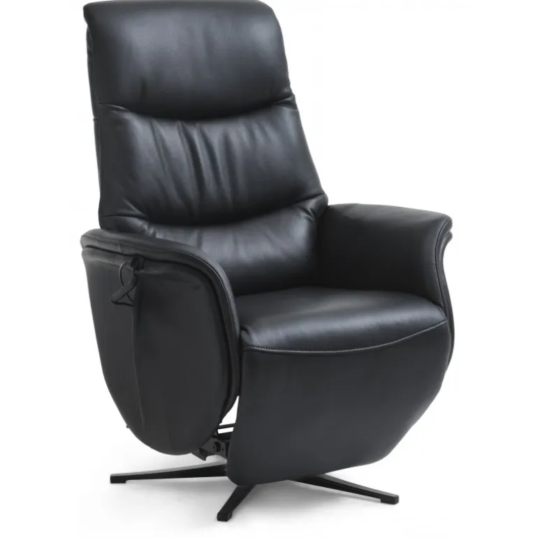 Bellahøj lænestol i Semianilin ægte læder med indbygget skammel og løftefunktion