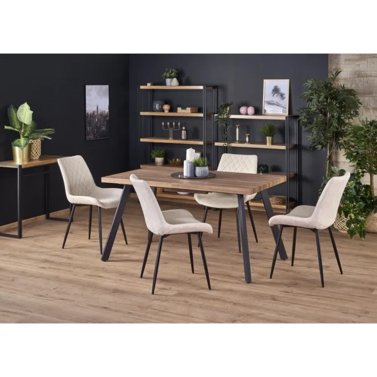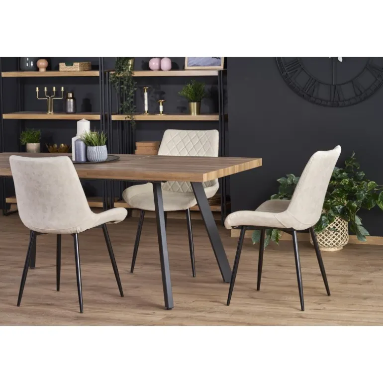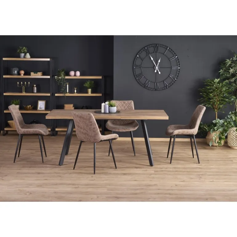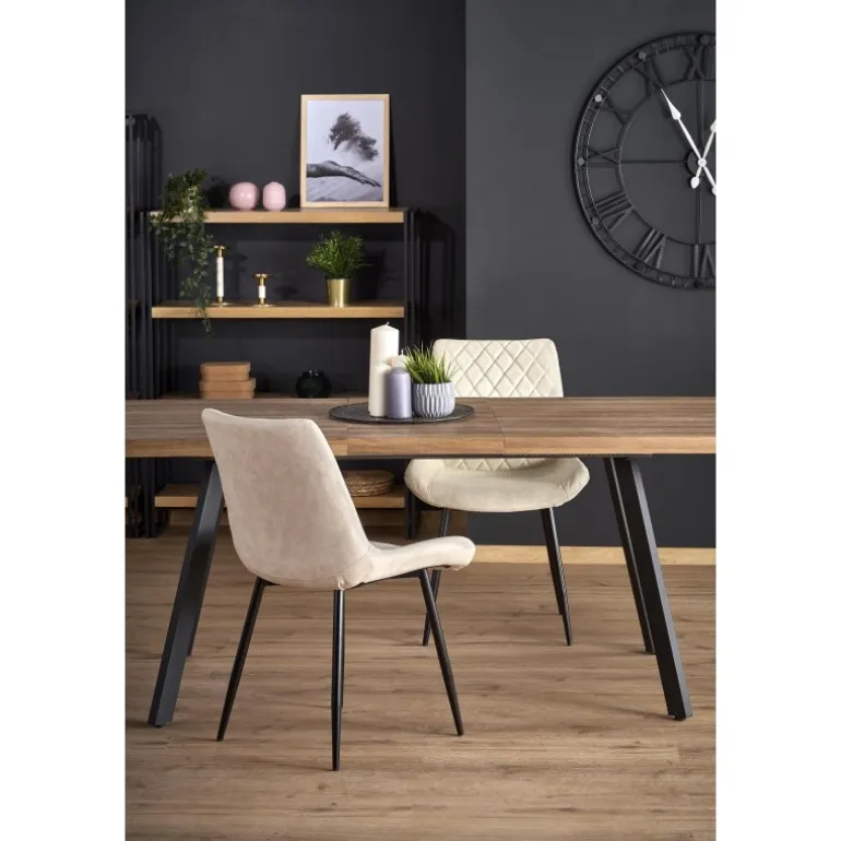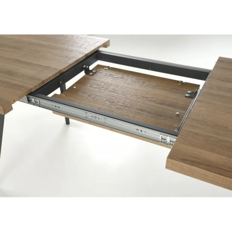 Oplev BERLIN Spisebord med udtræk, der kombinerer stil og funktionalitet. Bordet er fremstillet af lamineret MDF og pulverlakeret stål, hvilket sikrer holdbarhed og et moderne udseende. Med en justerbar længde fra 160 cm til 220 cm er dette bord ideelt til både hverdagsbrug og særlige lejligheder. Bordpladen har en smuk honning valnød farve, mens benene er elegant Sorte. For at bevare bordets udseende, skal du straks tørre det af, hvis der spildes væsker på overfladen.