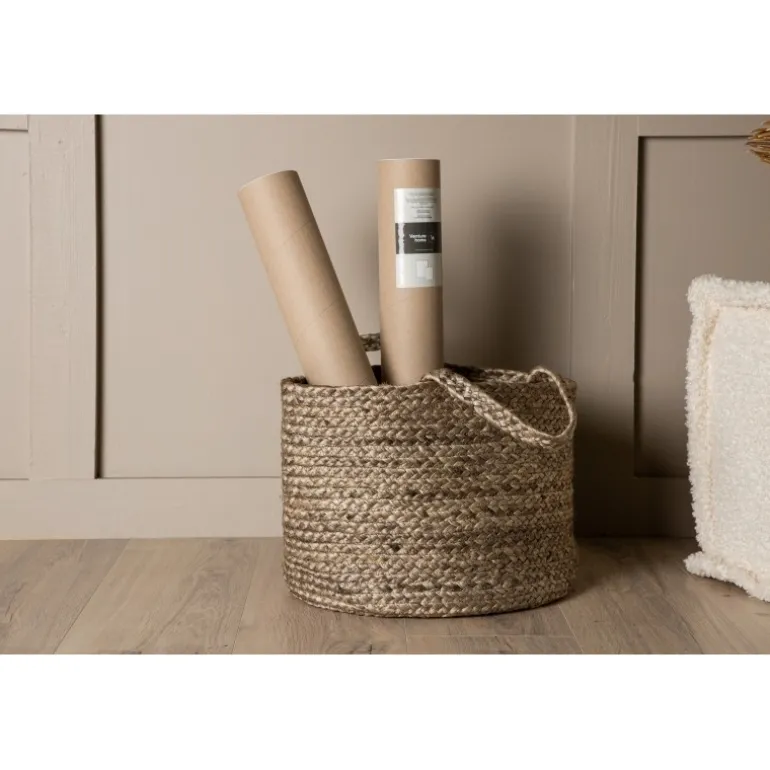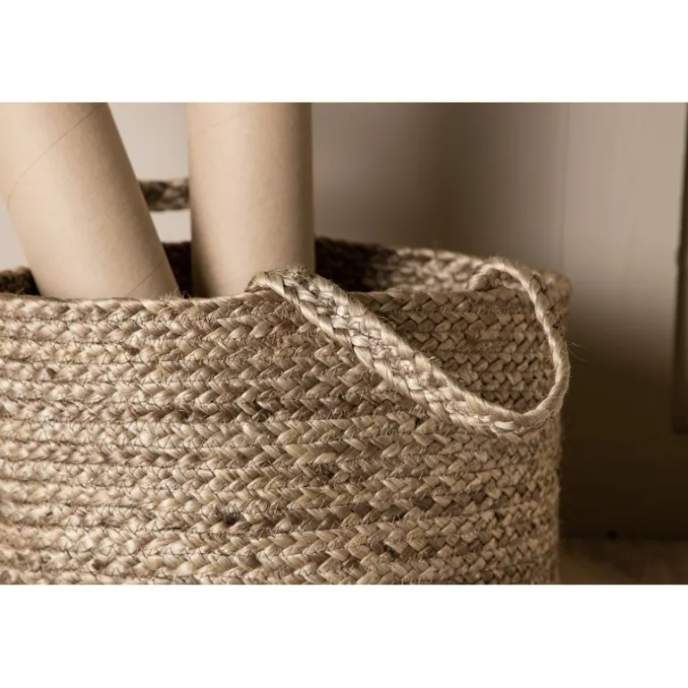Bhopal er vores fine opbevaringskurv i groft flettet jute! Denne fine kurv har praktiske håndtag og flere anvendelsesmuligheder, hvis fantasien tillader det; brug den som opbevaring til tæpper, håndklæder eller som en potte til dine grønne planter. Bemærk dog, at kurvene ikke er vandtætte, så placer planterne i en fugtsikker inderpotte først. Bhopal kommer i forskellige farver, er en flot indretningsdetalje og smart opbevaring – hvad mere kan man ønske?