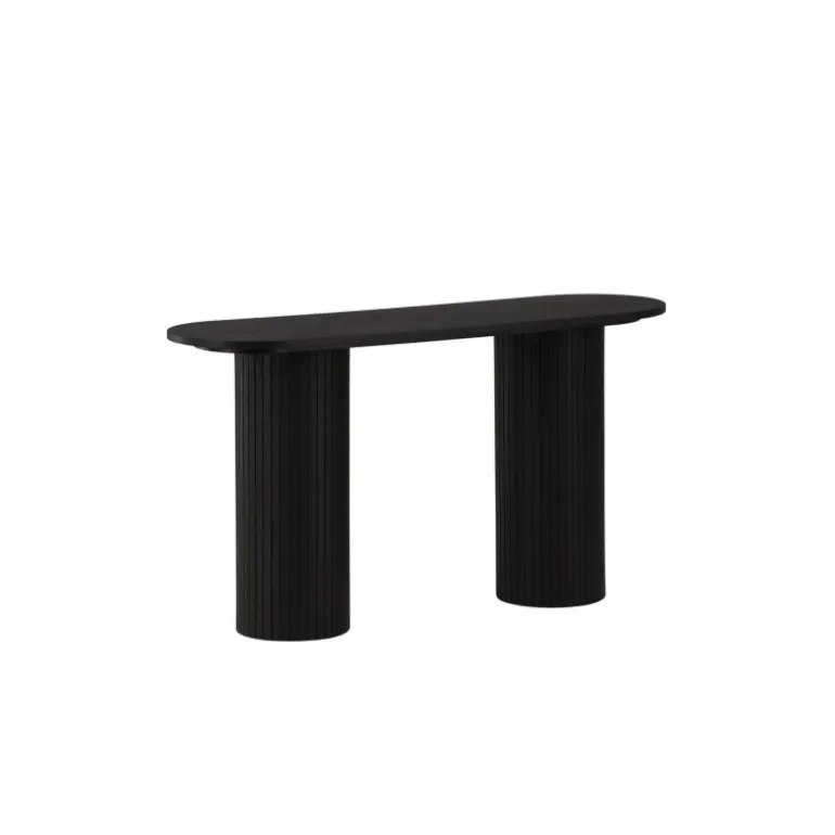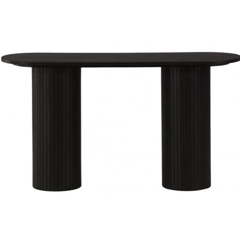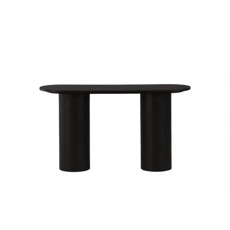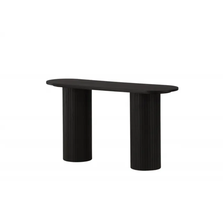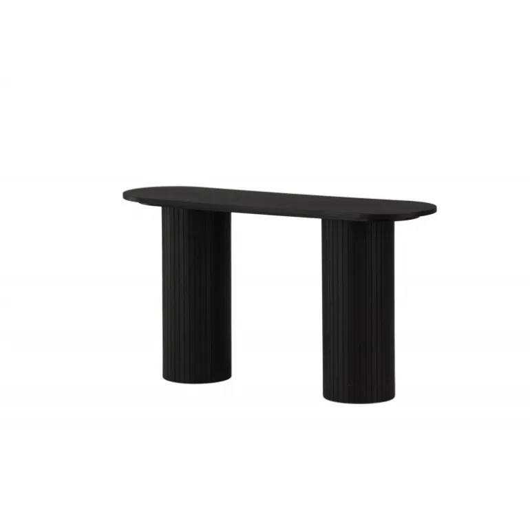 Giv din stue eller gang et moderne løft med dette lækre Bianca konsolbord i en smagfuld design. Bordet er konsekvent lavet af MDF med finer i en elegant sort finish og har en robust ramme med to cylinderformede ben i ribbet design. Den gennemtænkte helhed med bløde nordiske former skaber en varm og moderne følelse i rummet. Bordet er både praktisk og stilfuldt og følger de nyeste trends – en perfekt tilføjelse til hjemmet!