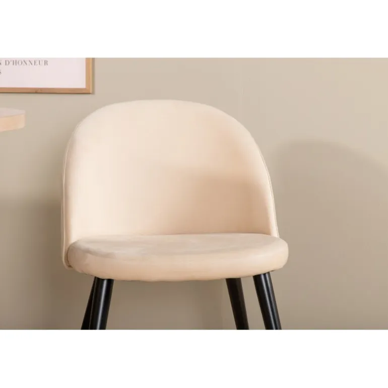 - Komfortable spisestole: 4 spisestole med behagelig siddeflade i beige polyesterlinned.