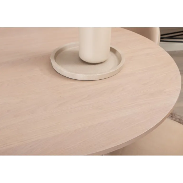 - Rundt MDF spisebord: Stilfuldt og robust design med en diameter på 110 cm og højde på 74 cm.
