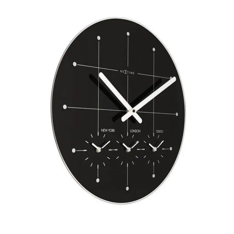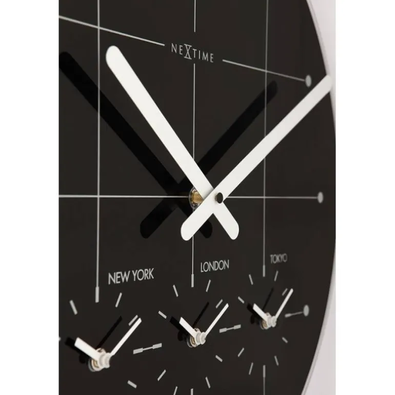 This large clock has four independent mechanisms showing the time in New York, London and Tokyo simultaneously.
