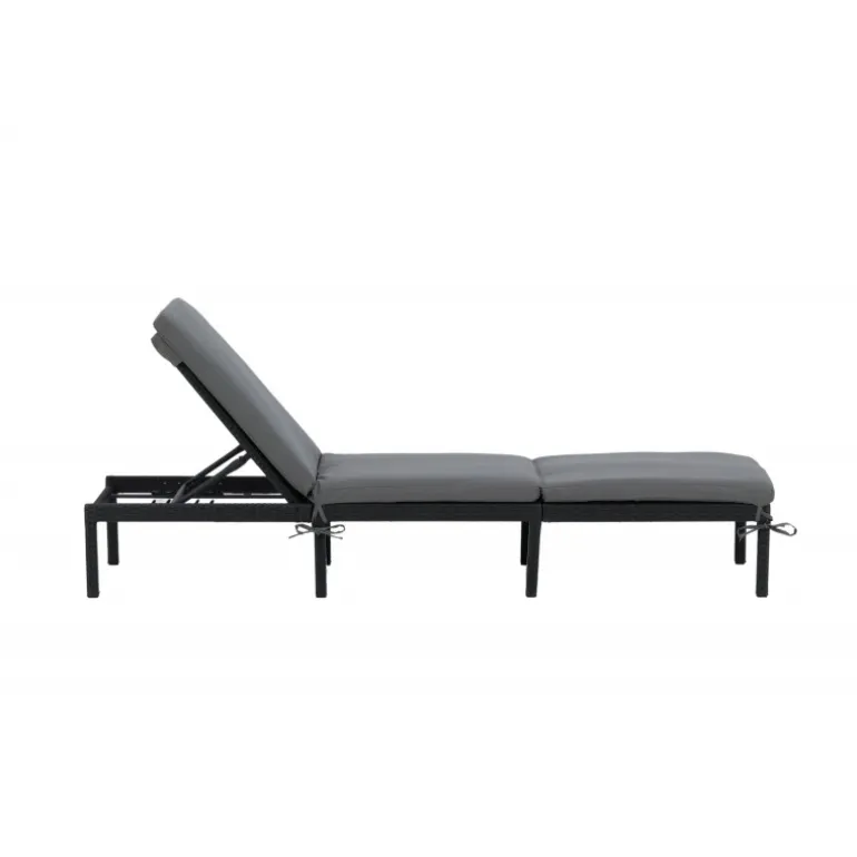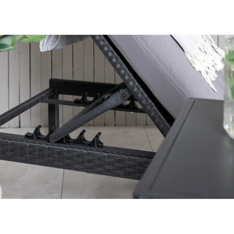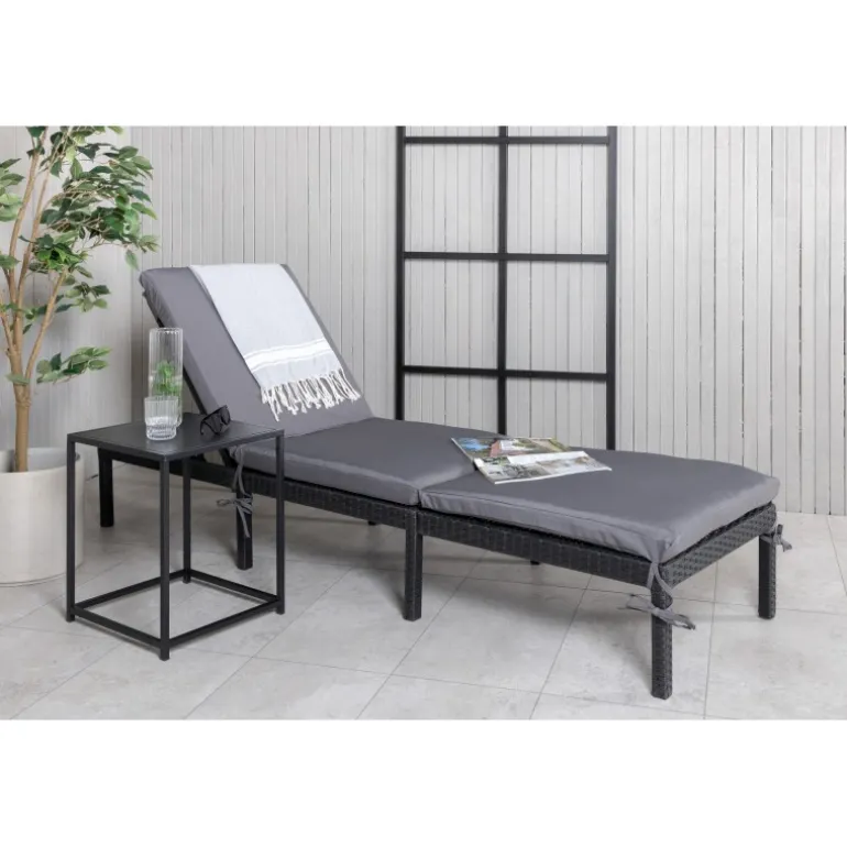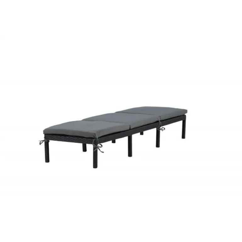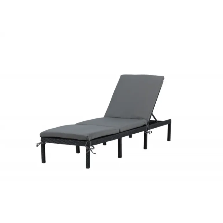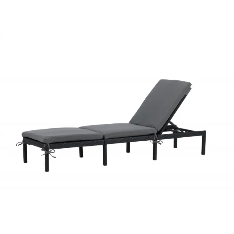 Oplev ultimativ komfort og stil med Bilbao Solseng. Fremstillet i sort kunstig rattan, denne solseng er både holdbar og elegant. Ryggen er justerbar, hvilket giver dig mulighed for at finde den perfekte liggeposition. En grå solsengshynde er inkluderet, så du kan nyde alle sommerens øjeblikke med maksimal komfort. Ideel til både afslapning og solbadning. Med sit moderne design passer den perfekt ind i enhver udendørs indretning.