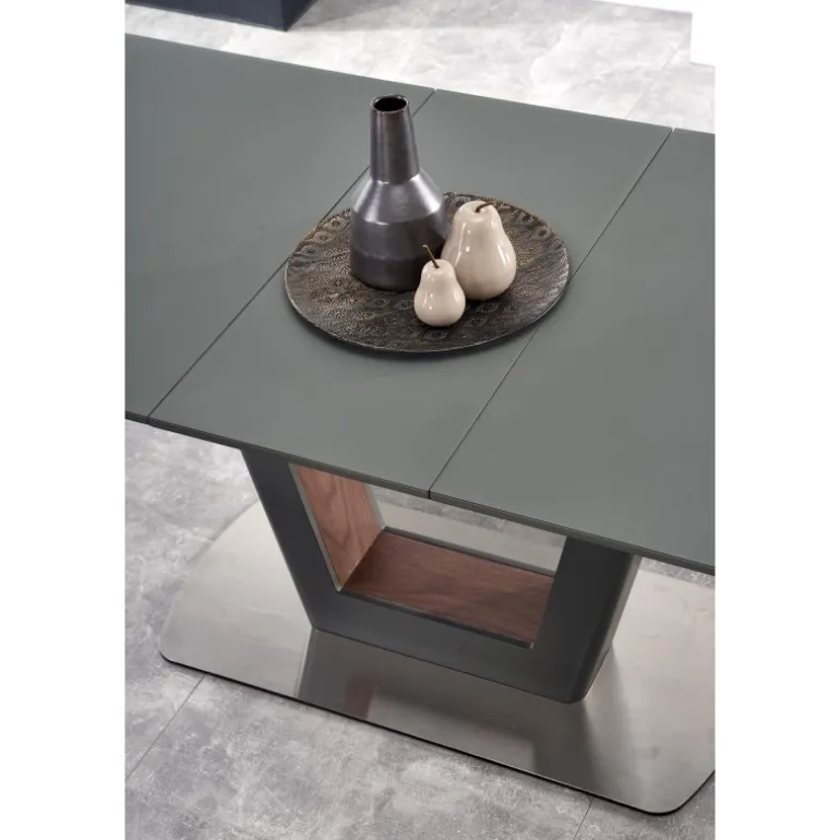 Oplev den perfekte kombination af stil og funktionalitet med BILOTTI bord antracit. Dette Spisebord med udtræk har dimensionerne 160÷200/90/76 cm, hvilket gør det ideelt til både små og store sammenkomster. Fremstillet af glas, lakeret MDF, lamineret MDF, og rustfrit stål, tilbyder dette bord både holdbarhed og elegance. Den antracit mat og valnød finish tilføjer et moderne touch til dit hjem.